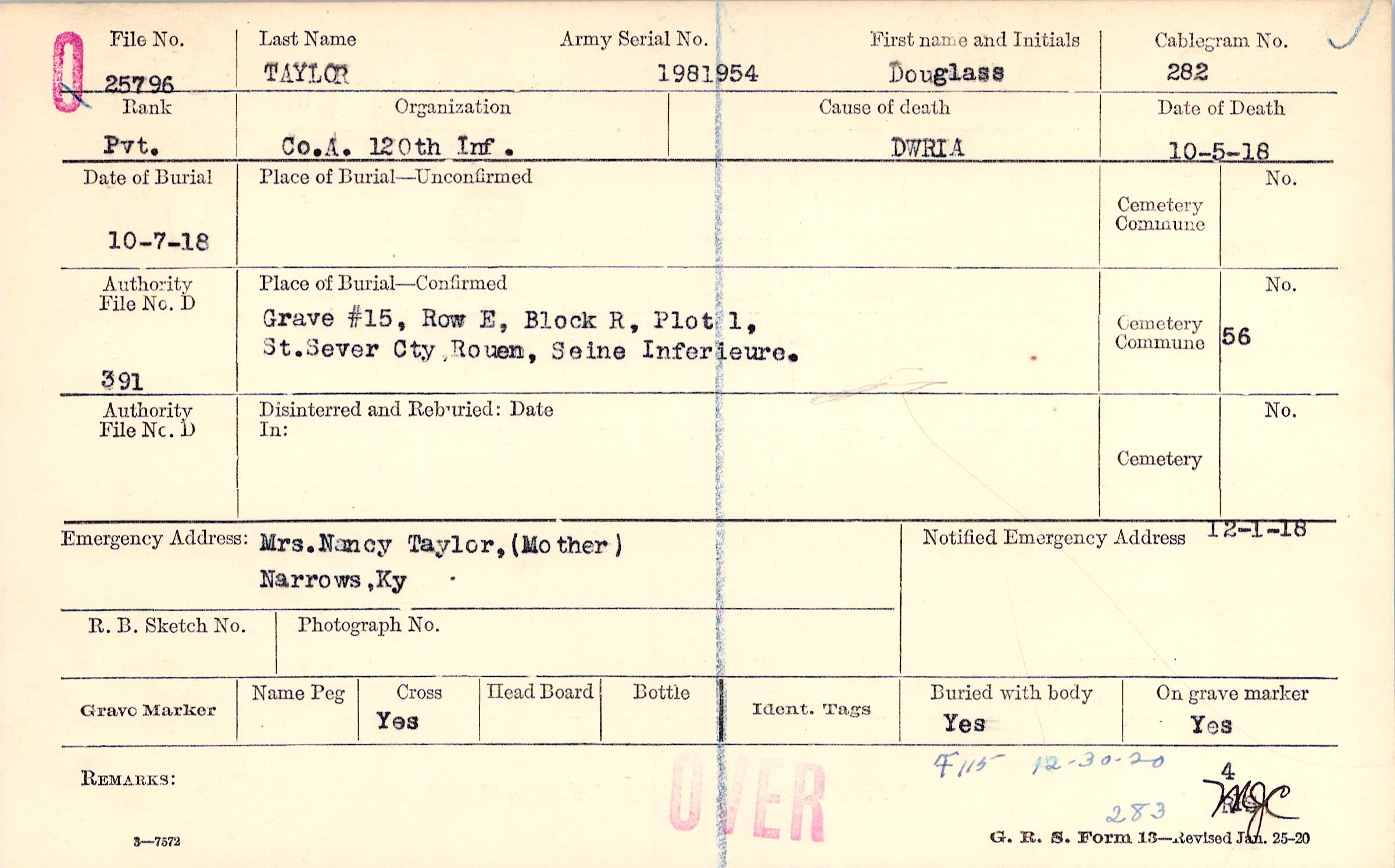 Grave #15, Row E, Block R, Plot 1, St. Sever Cty. , Rouen, Seine Inferieure