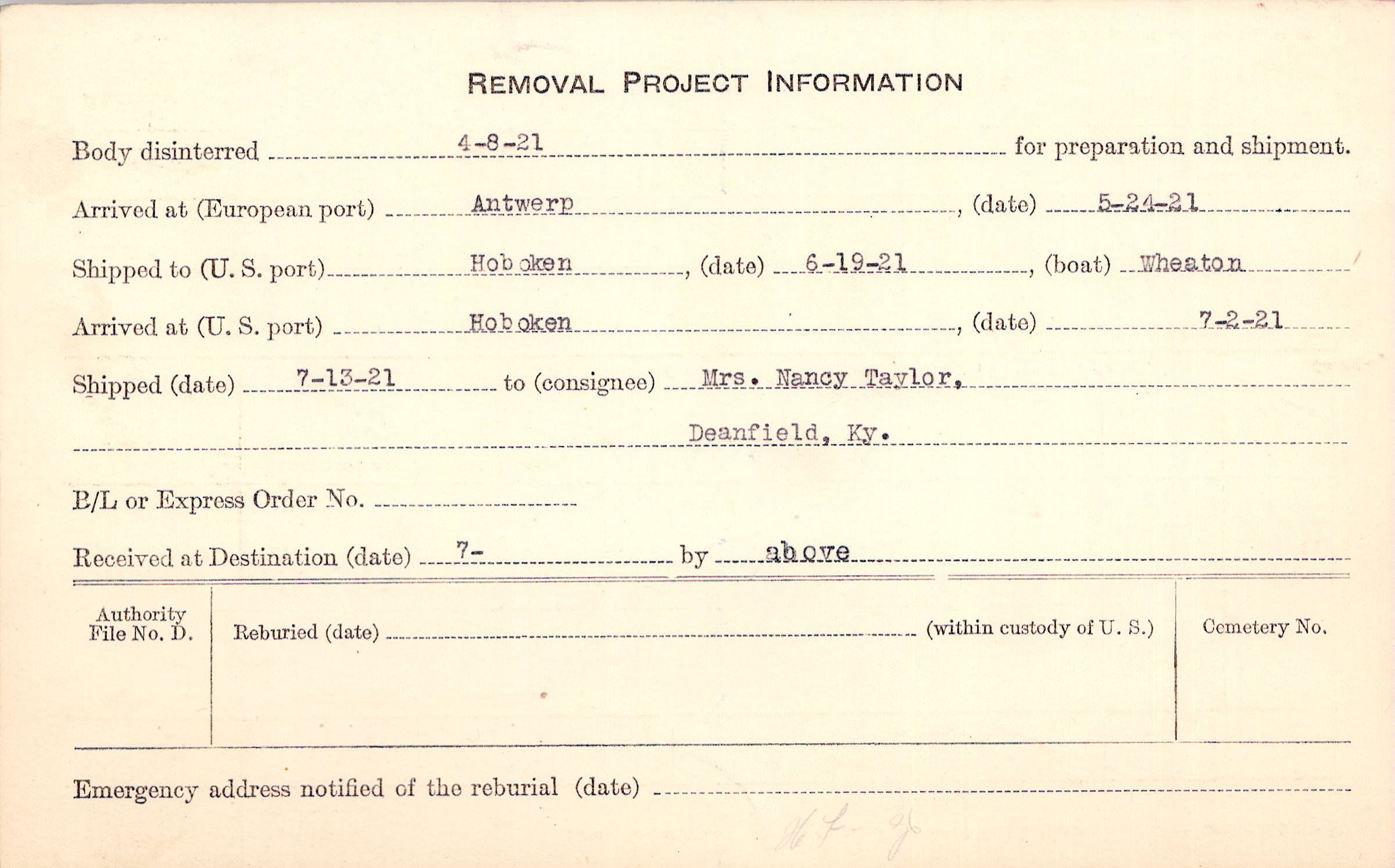 to Mrs. Nancy Taylor, Deanfield, Ky.