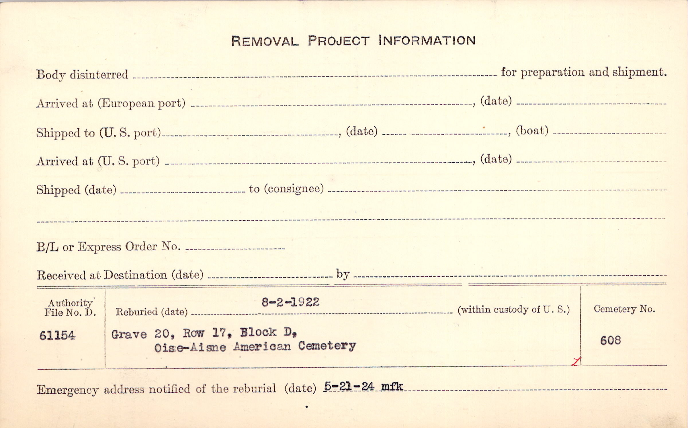 | Permanent Burial in Foreign Cemetery |