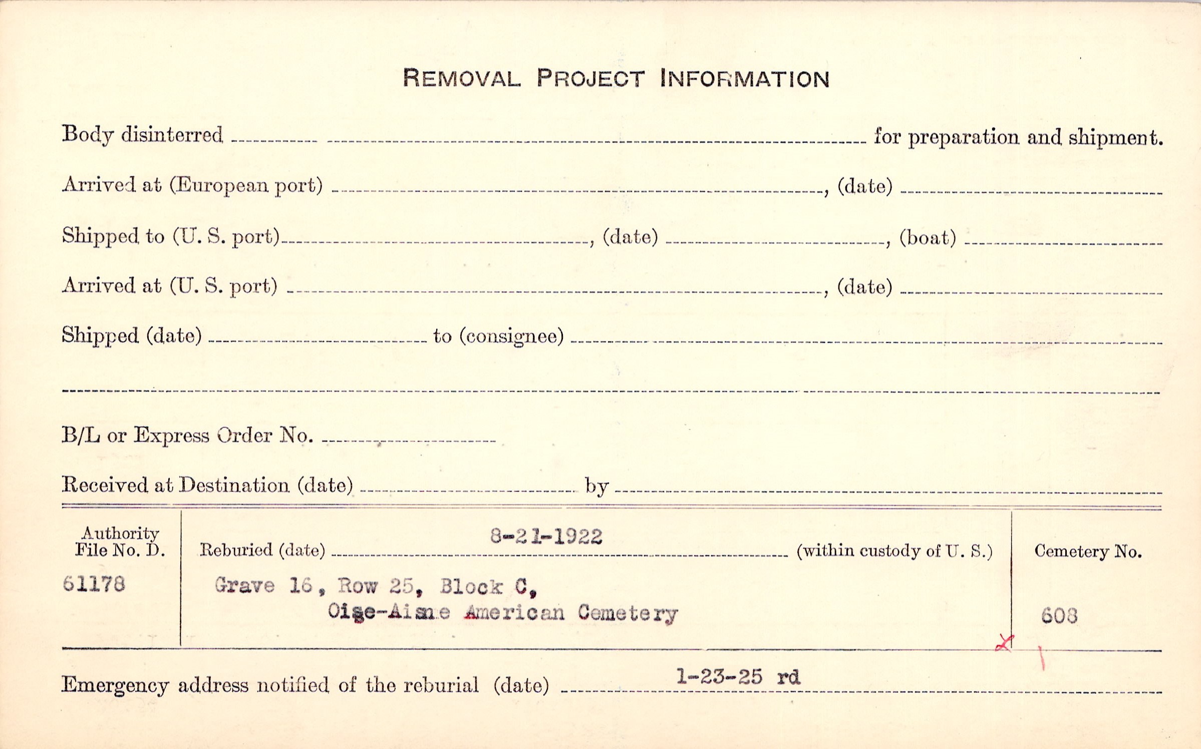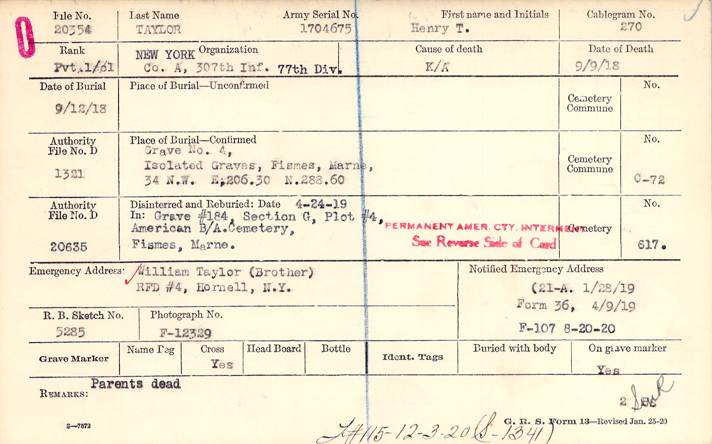 Grave 184, Section G, Plot 4, American B/A Cemetery, Fismes, Marne