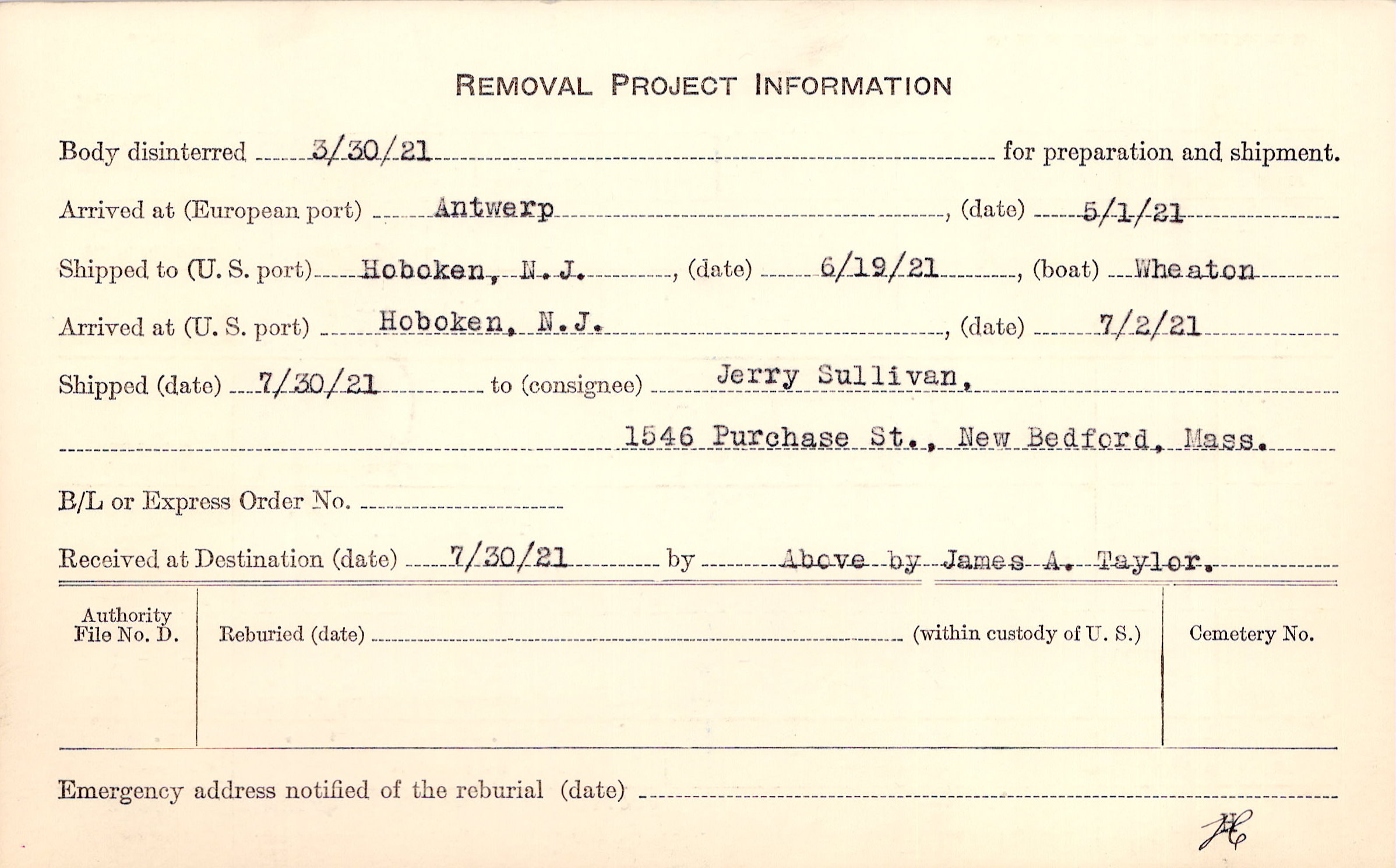 to Jerry Sullivan, 1546 Purchase St., New Bedford, Mass.