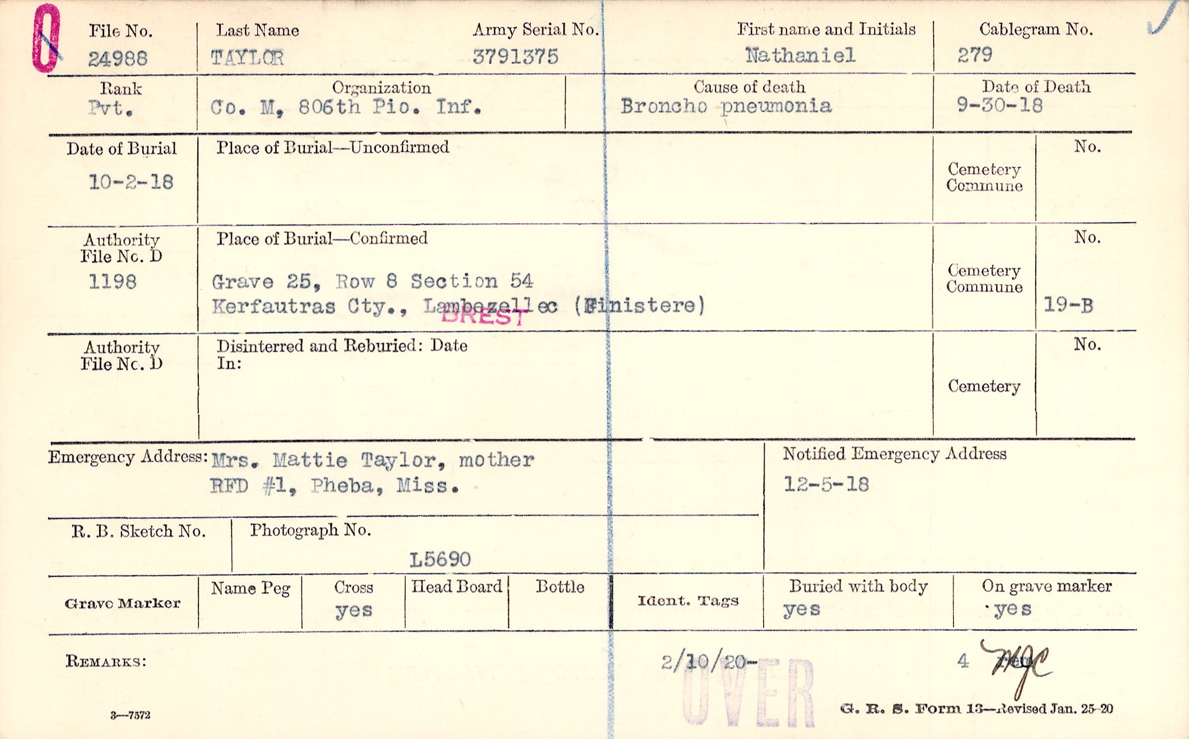 Grave 25, Row 8, Section 54, Kerfautras Cty., Lambezellec, Finistere