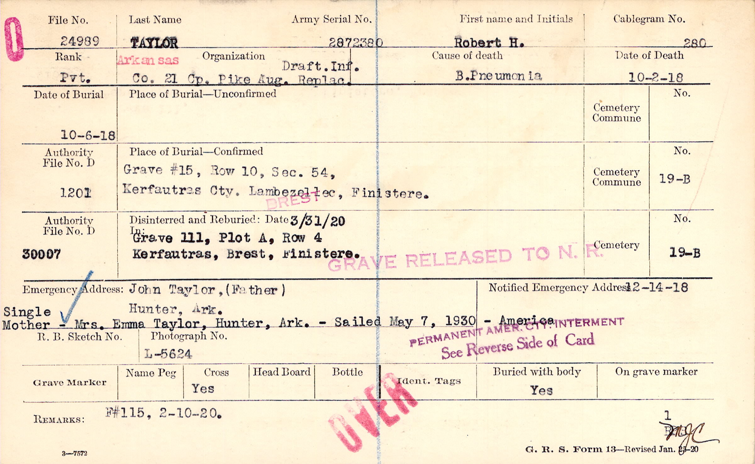 John Taylor, (Father), Hunter, Ark., Single Mother - Mrs. Emma Taylor, Hunter, ARk. - Sailed May 7, 1930 - America