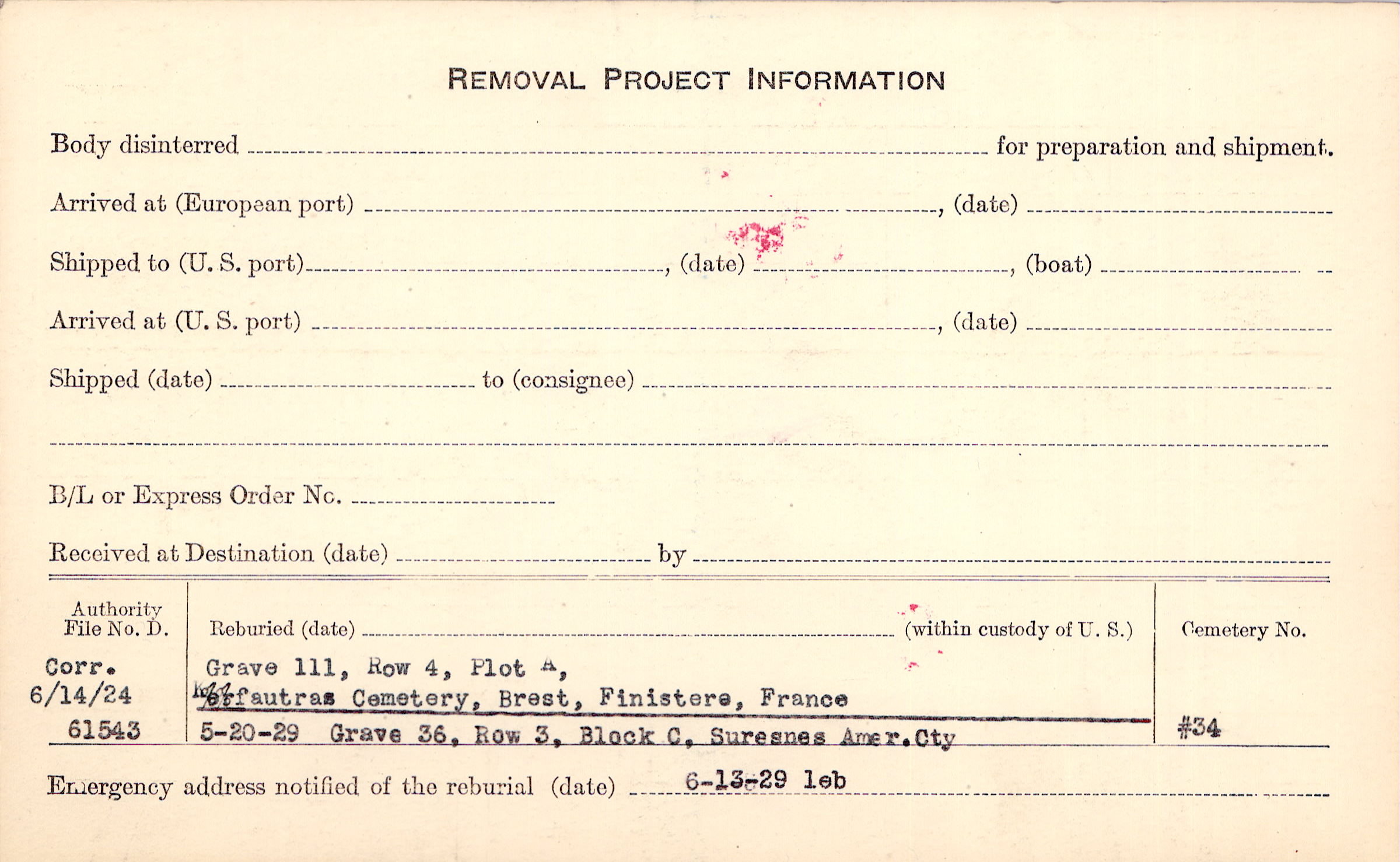 Prior Burial in Foreign Cemetery |