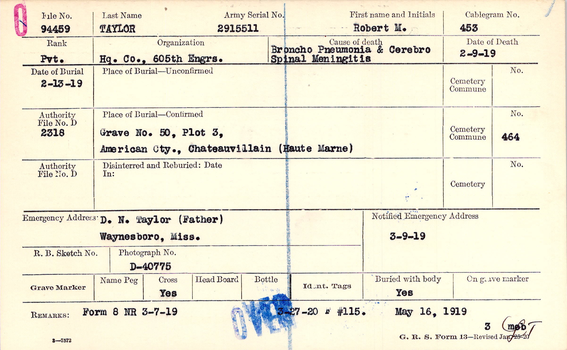 Grave 50, Plot 3, American Cty., Chateauvillain, Haute Marne
