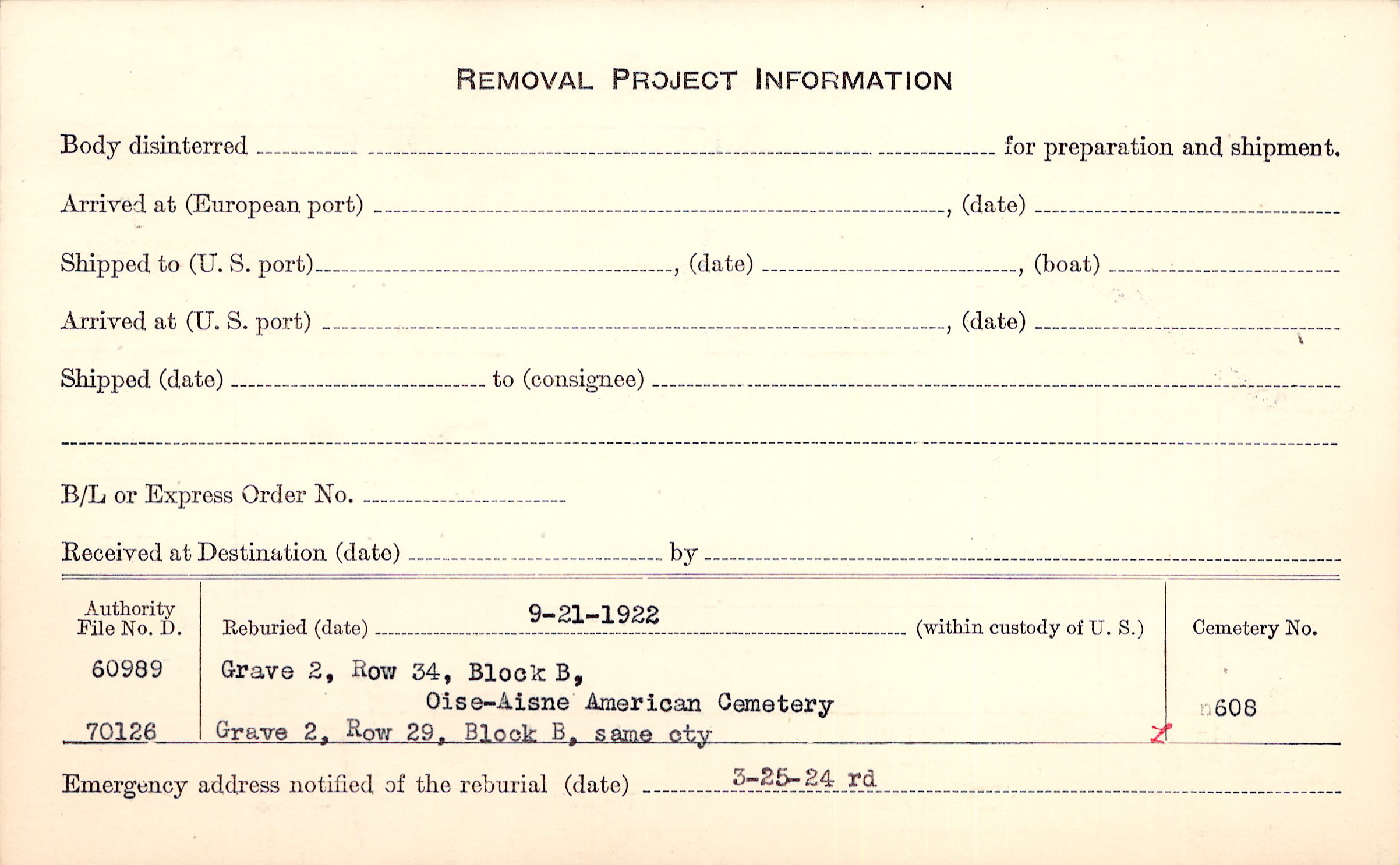 Prior Burial in Foreign Cemetery |