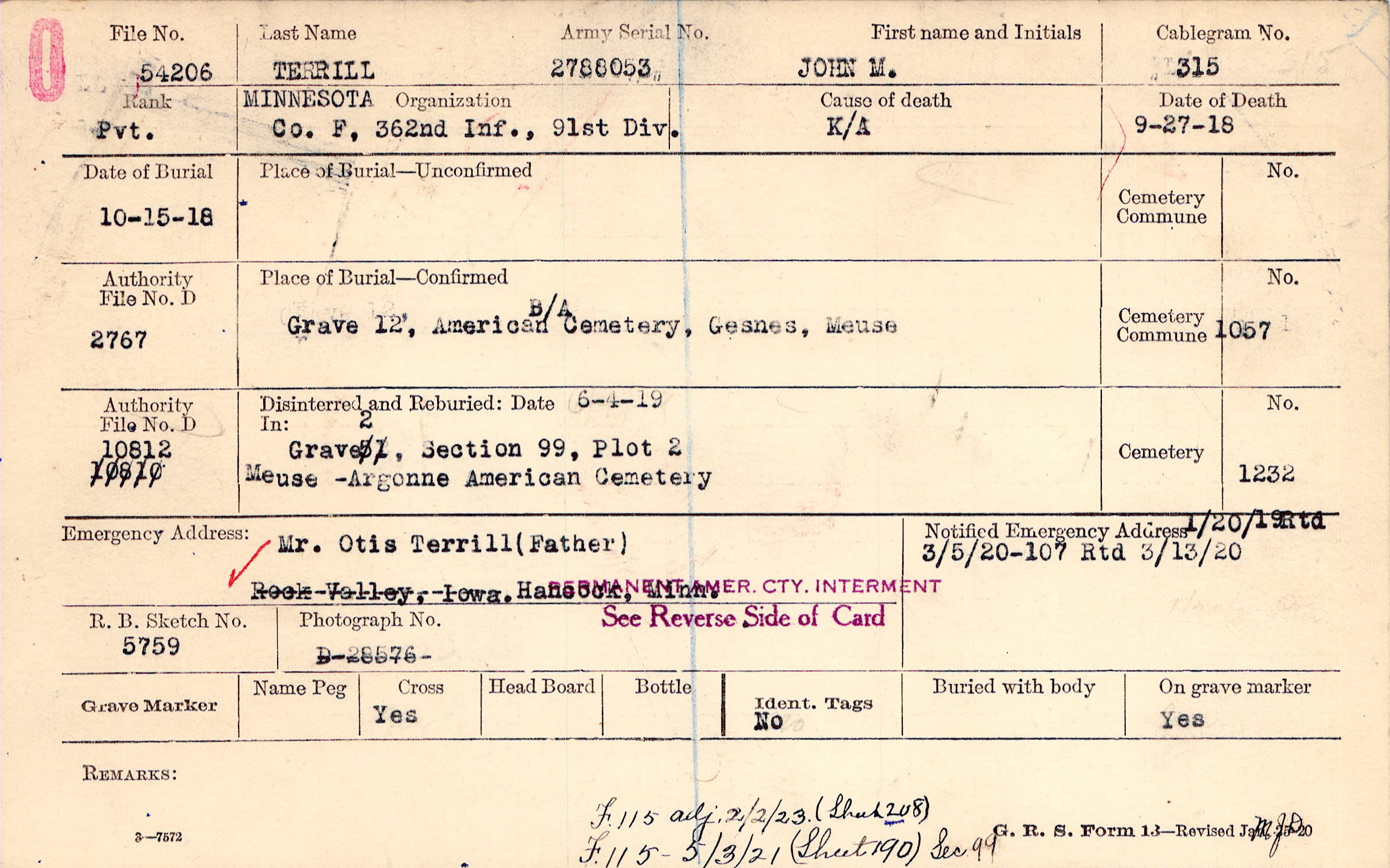 1/20/1919 Rtd, Form 107: 3/5/1920 Rtd, 3/13/1920