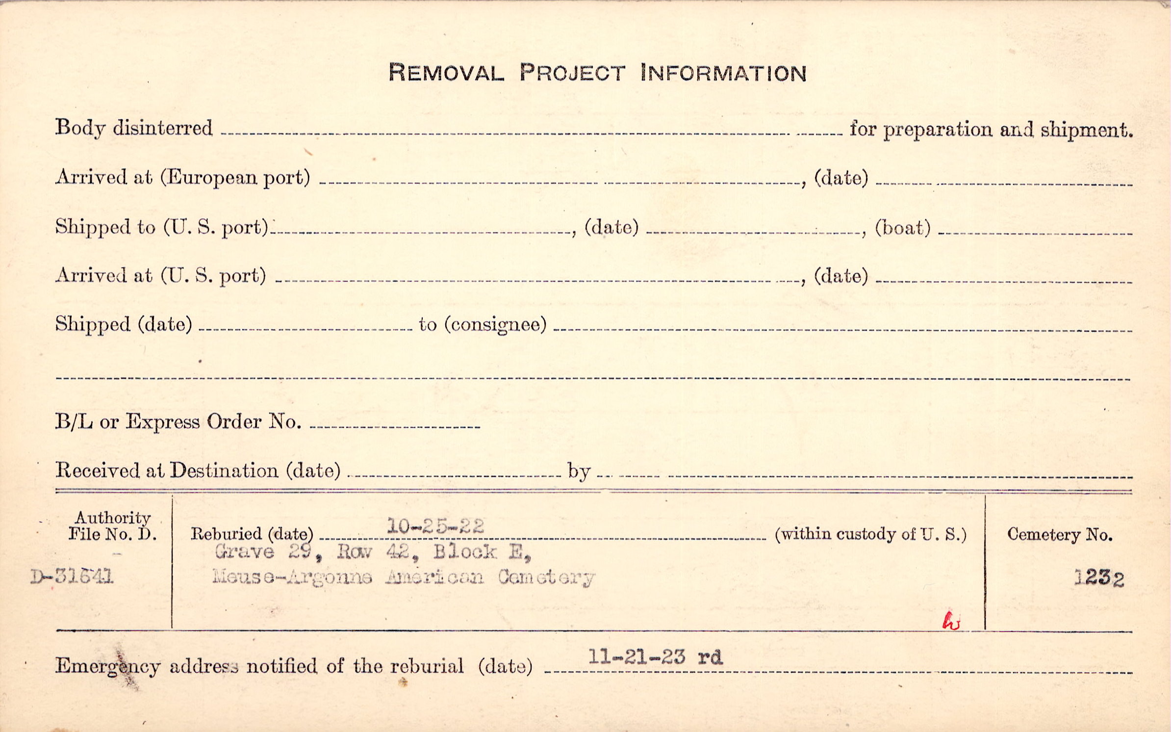 Grave 12, American B/A Cemetery, Gesnes, Meuse