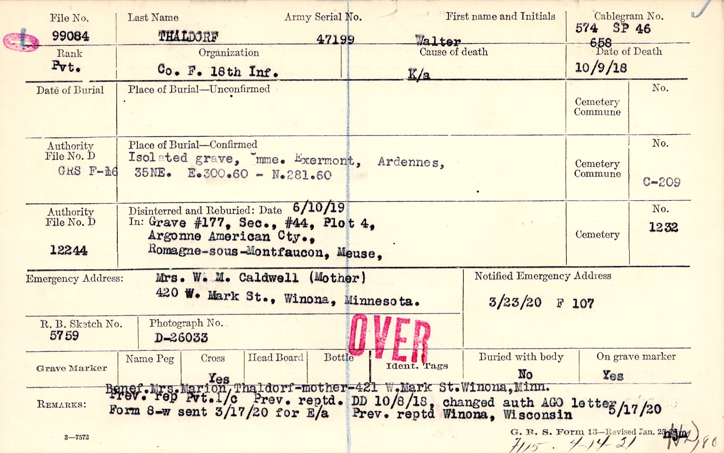 Mrs. W. M. Caldwell (Mother), 420 W. Mark St., Winona, Minnesota.