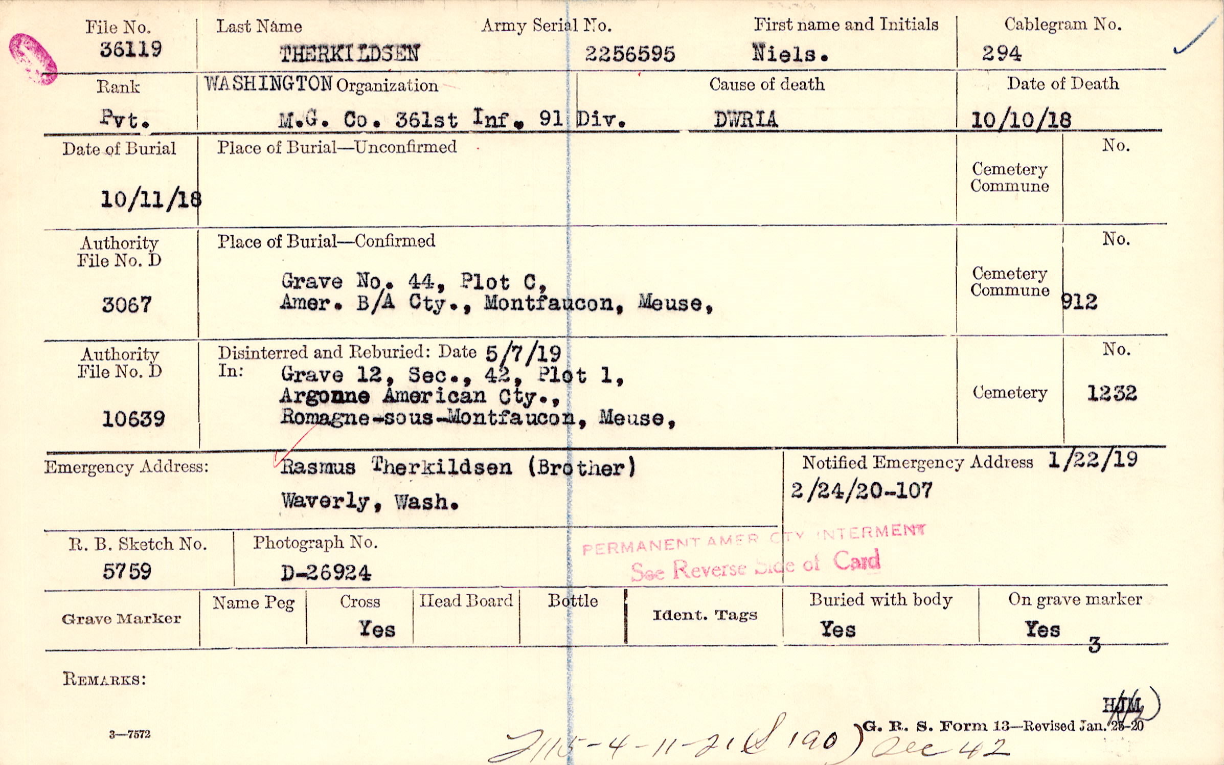 1/22/1919, Form 107: 2/24/1920