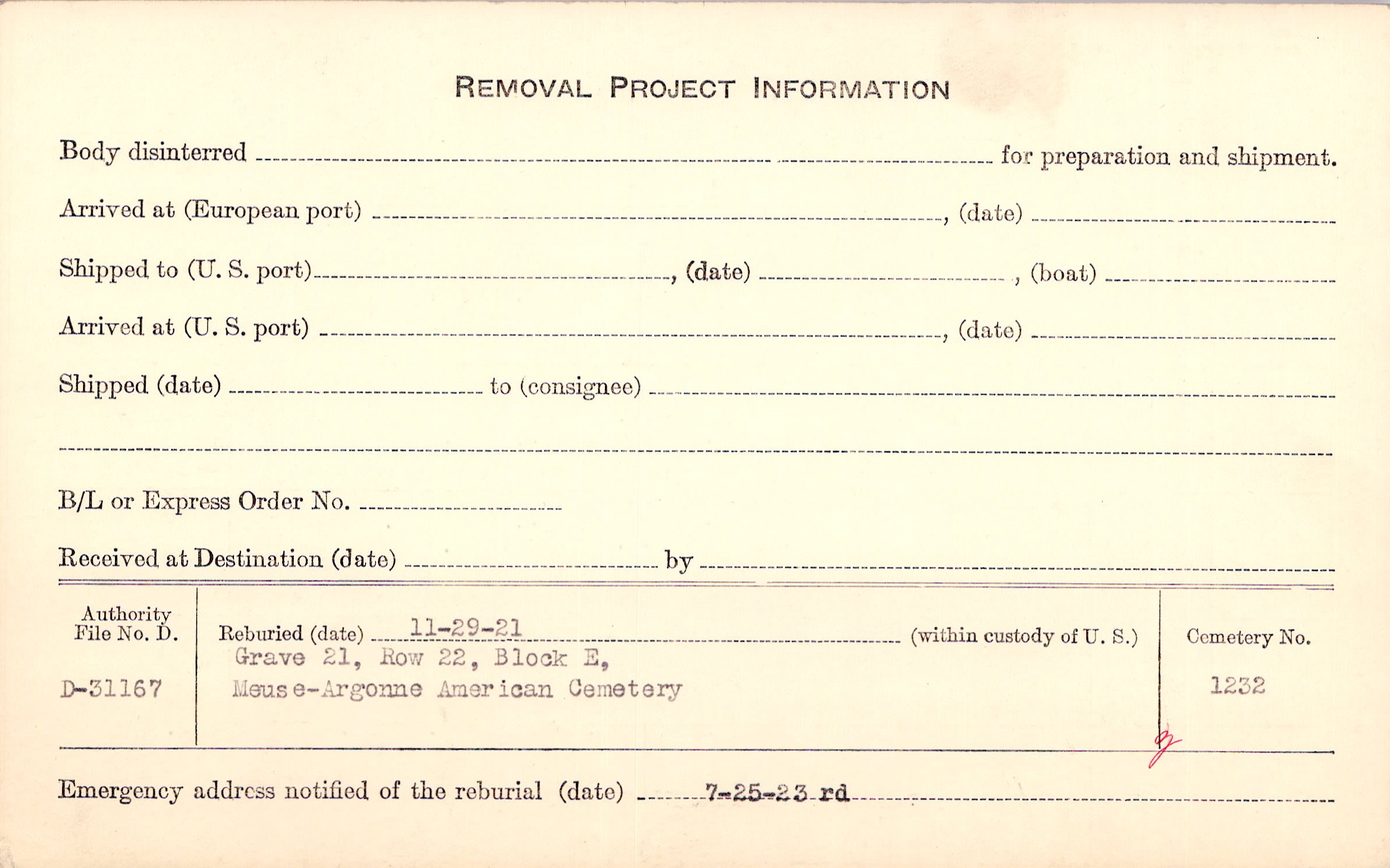 | Permanent Burial in Foreign Cemetery |