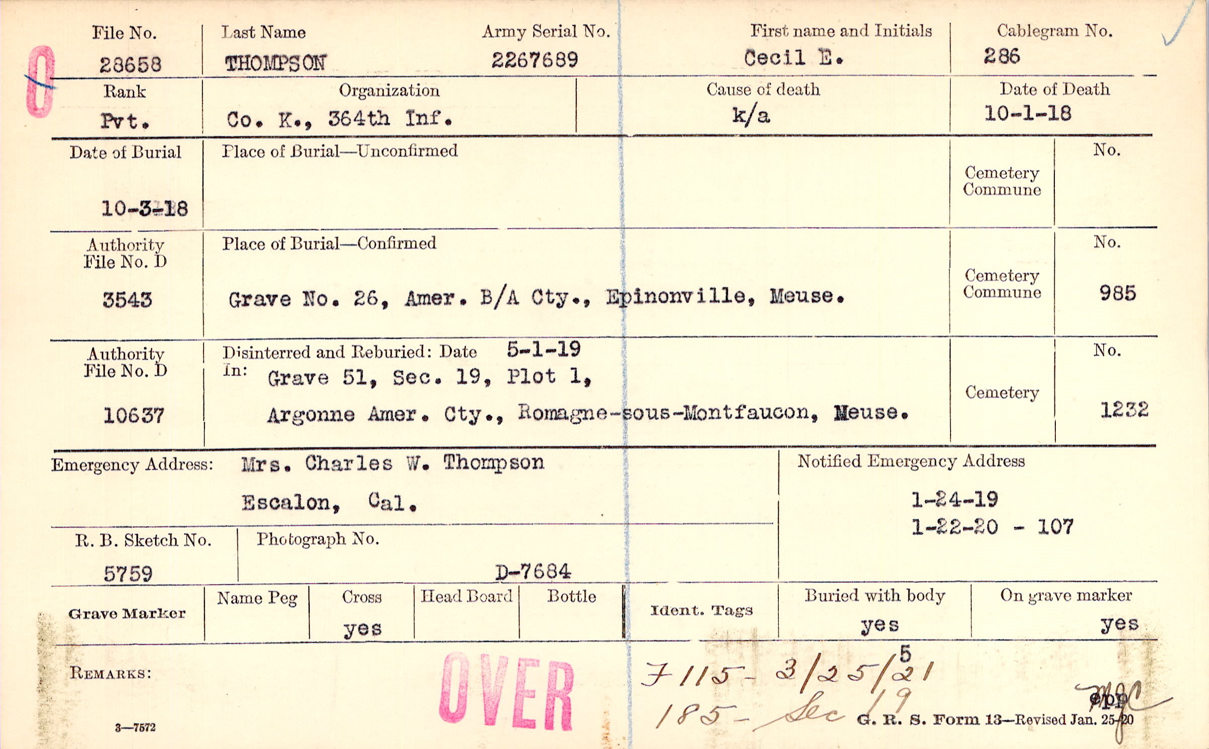 Grave 26, Amer. B/A Cty., Epinonville, Meuse
