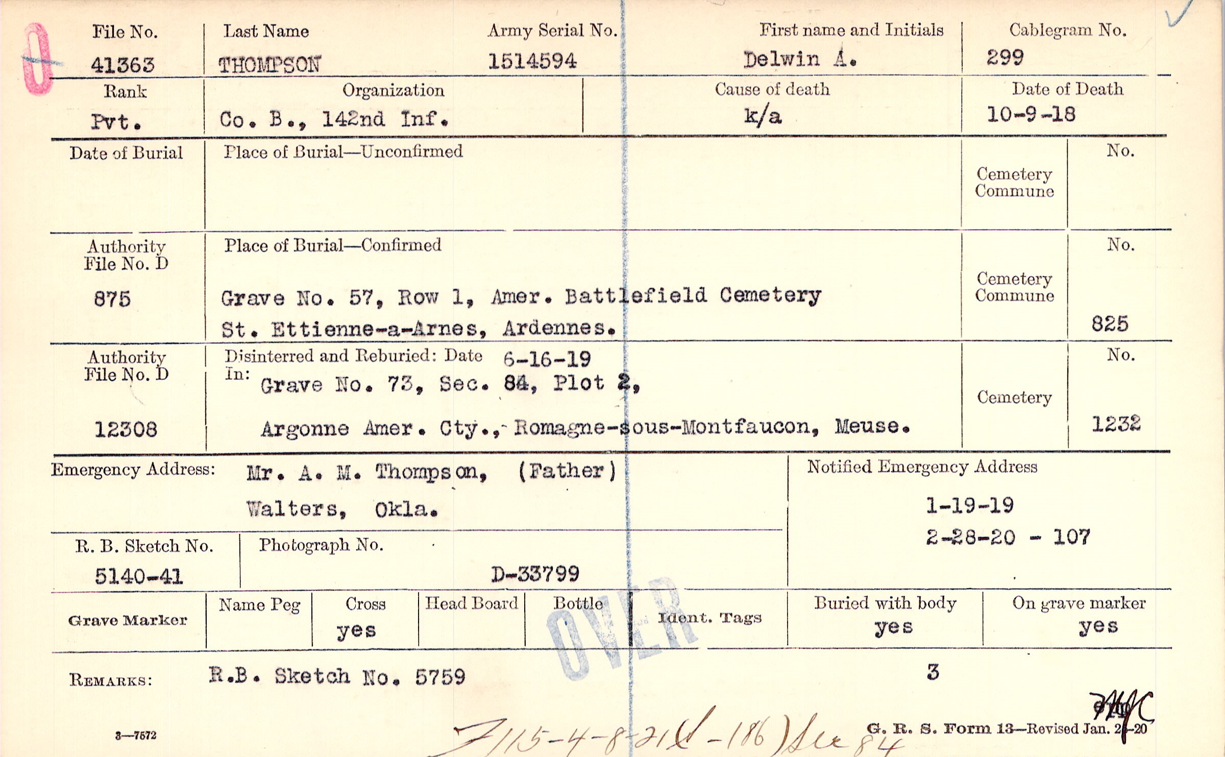 to Alfred M Thompson, Walters, Okla.