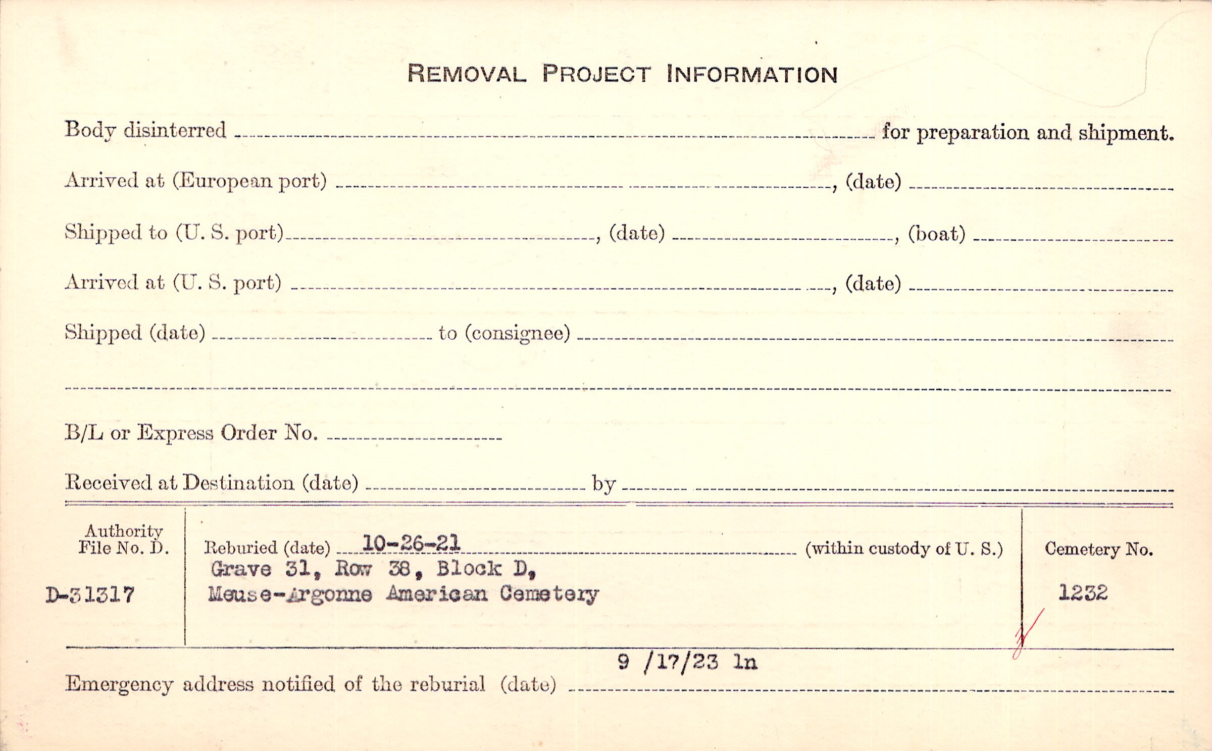 Grave 7, Section 67, Plot 1, Argonne American Cemetery, Romagne-sous-Montfaucon, Meuse