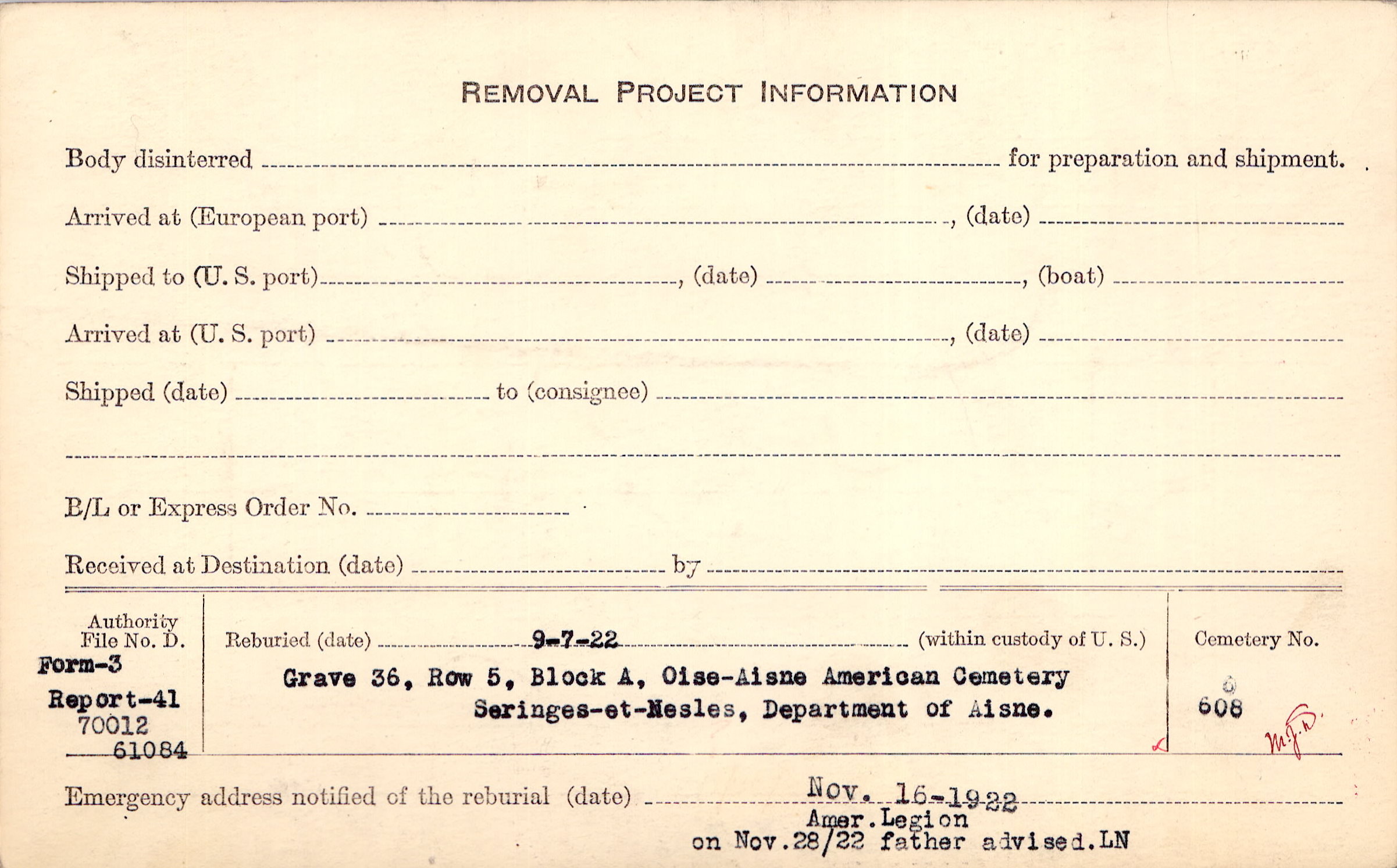 Grave 4, Amer. Plot, Municipal Cty., Blois, Loire-et-Cher.