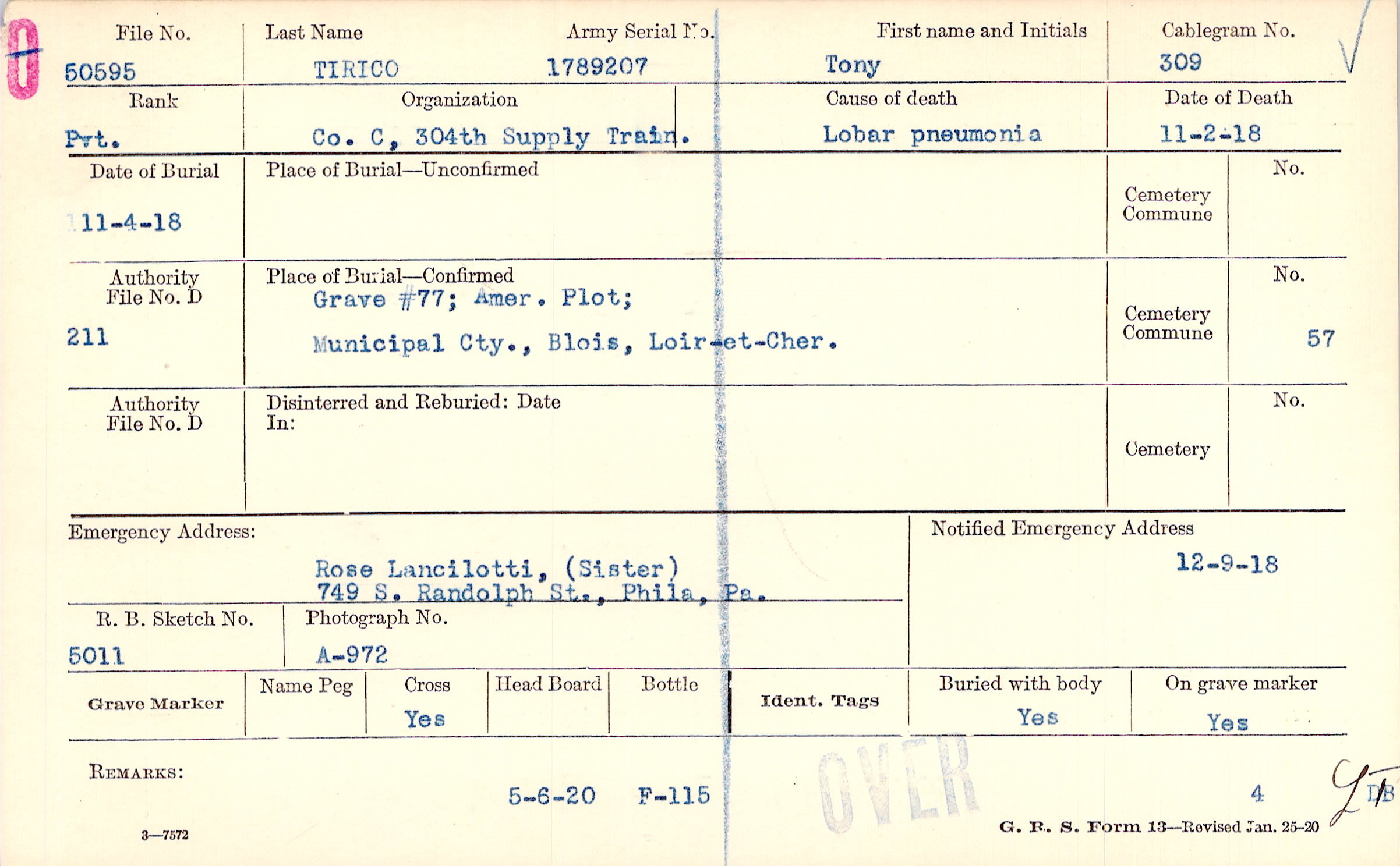 Rose Lancilotti, (Sister), 749 S. Randolph St., Phila, Pa.
