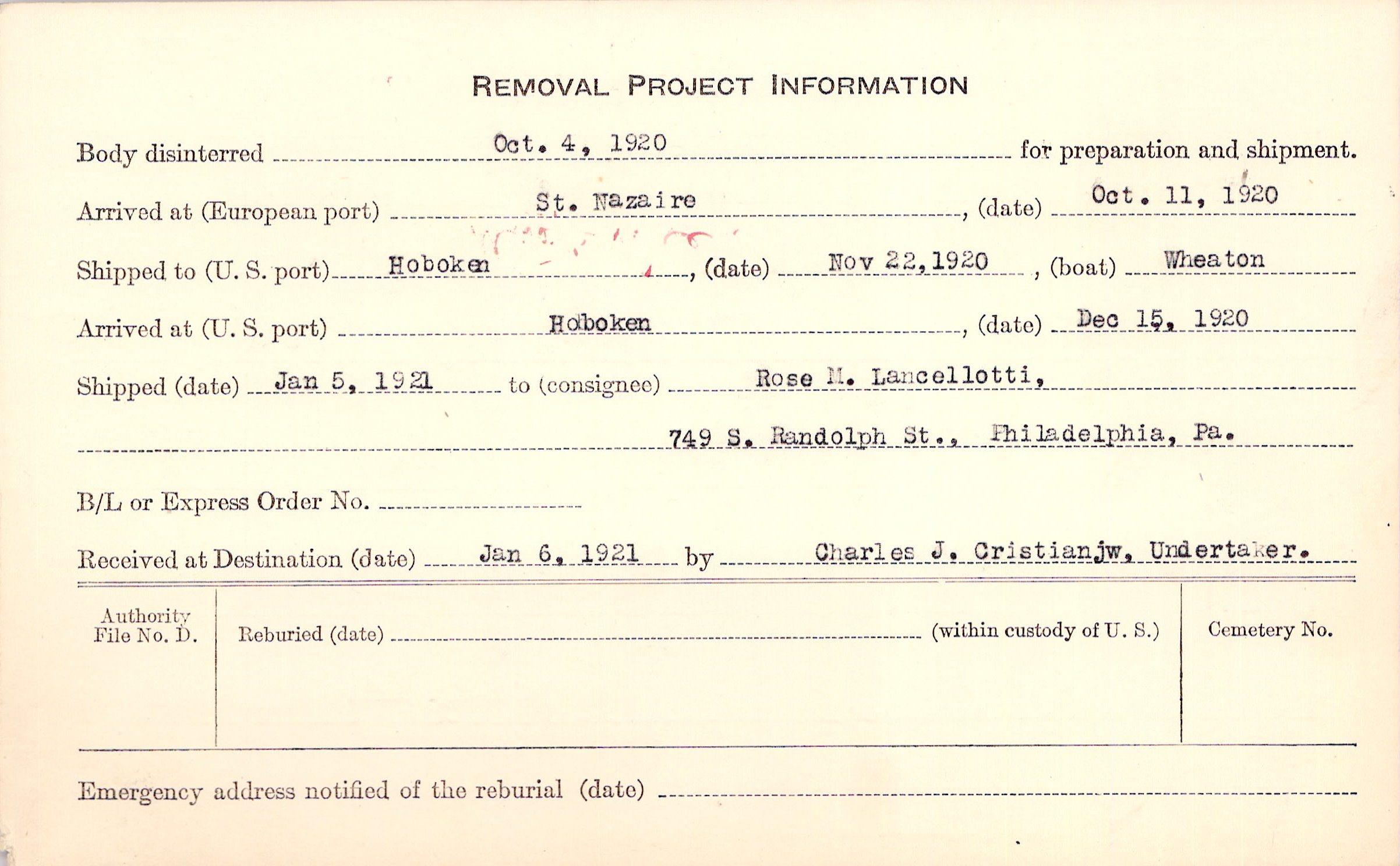 to Rose M. Lancellotti, 749 S. Randolph St., Philadelphia, Pa.