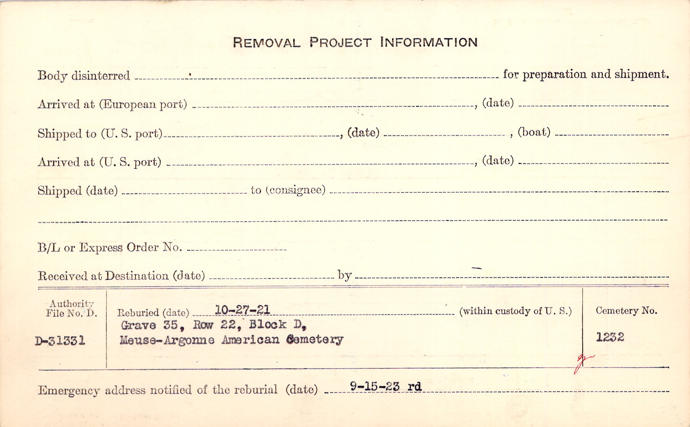 Grave 45, Section 69, Plot 1, Argonne American Cemetery, Romagne-sous-Montfaucon, Meuse