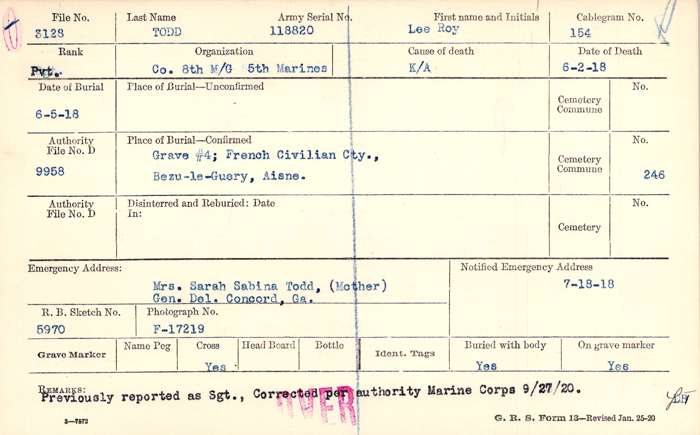 Grave #4, French Civilian Cty., Bezu-le-Guery, Aisne