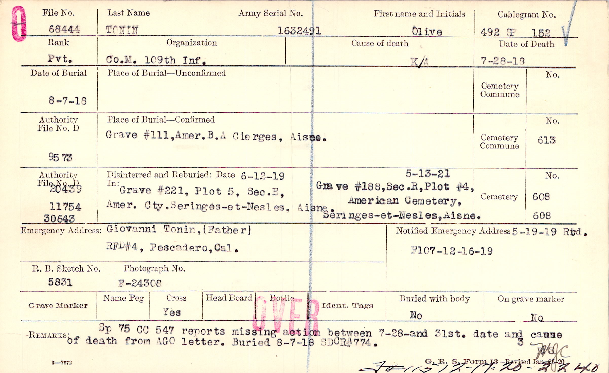 Grave #111, Amer. B.A, Cierges, Aisne.