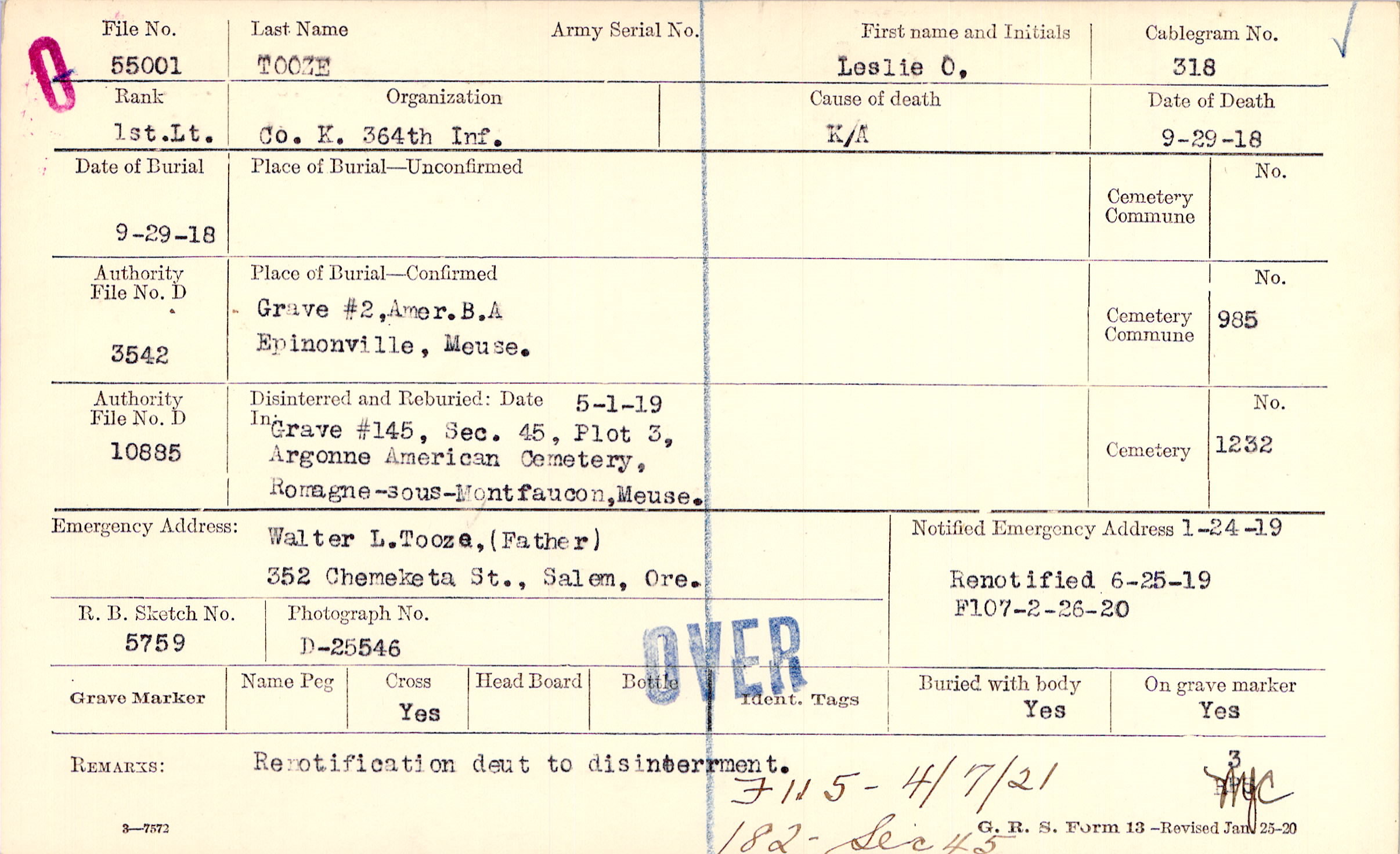 Walter L. Tooza, (Father), 352 Chemeketa St., Salem, Ore.