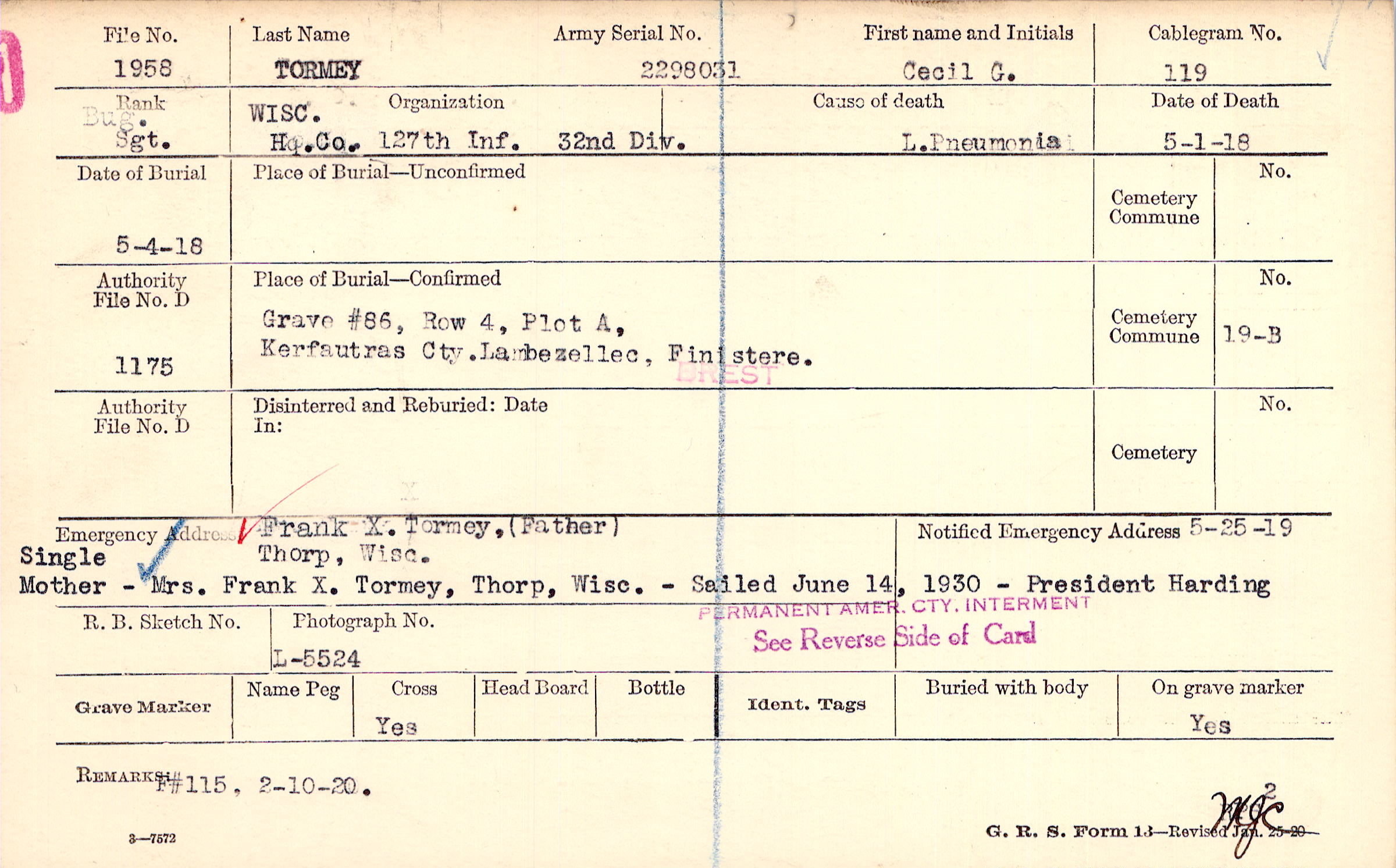 Grave #86, Row 4, Plot A, Kerfautras Cty., Lambezellec, Finistere.