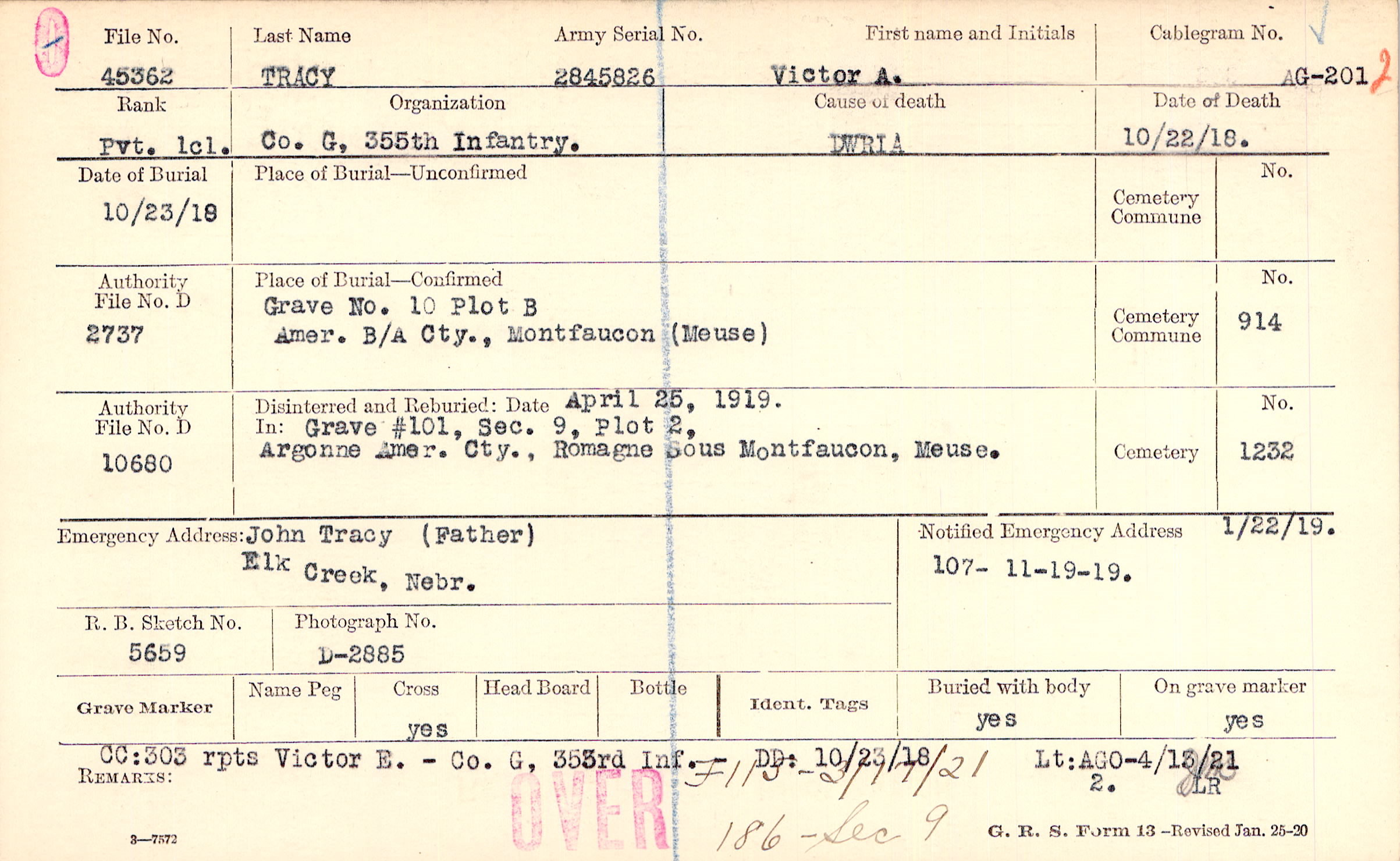 1/22/1919, Form 107: 11/19/1919