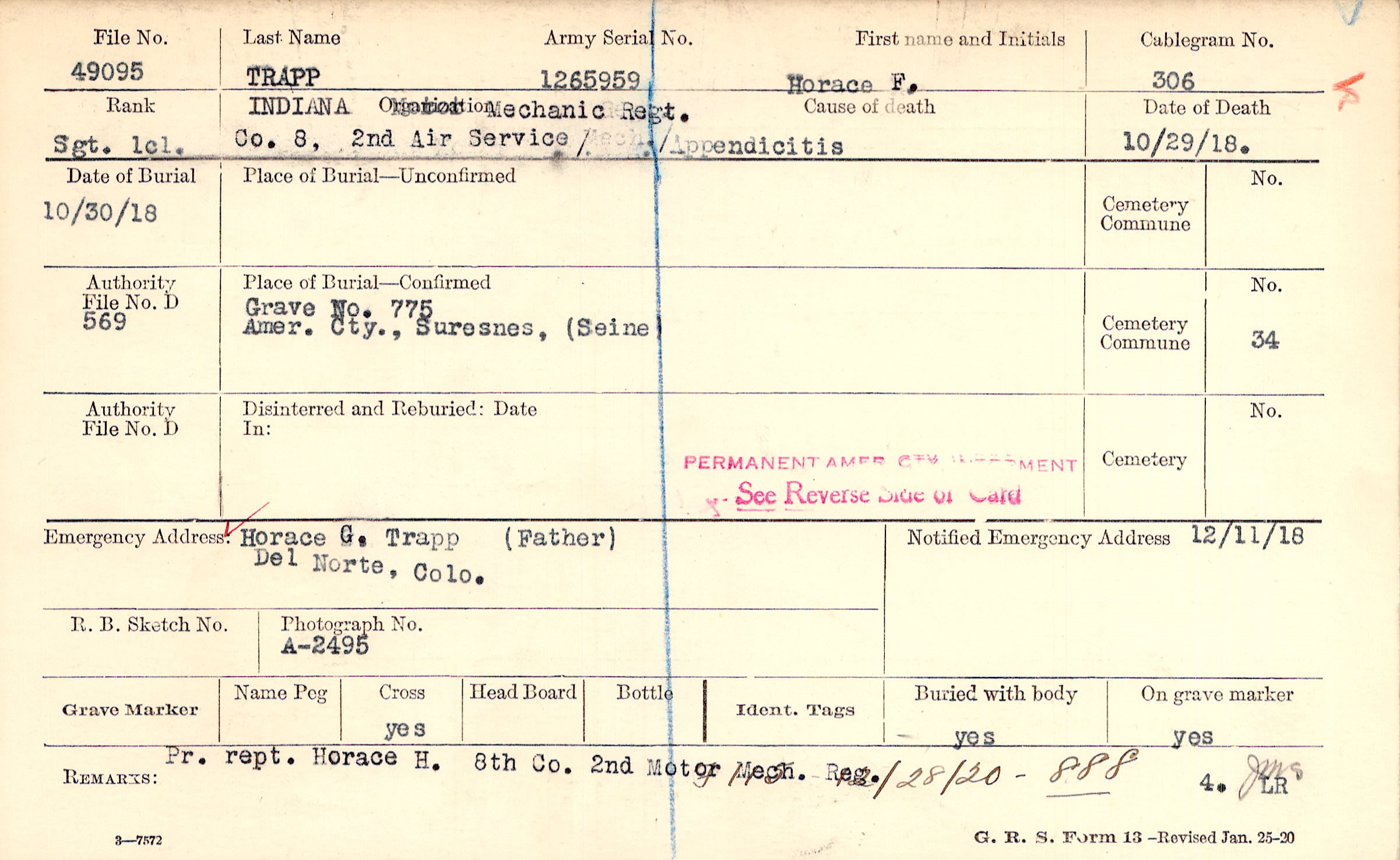 Grave 775, Amer. Cty., Suresnes, Seine
