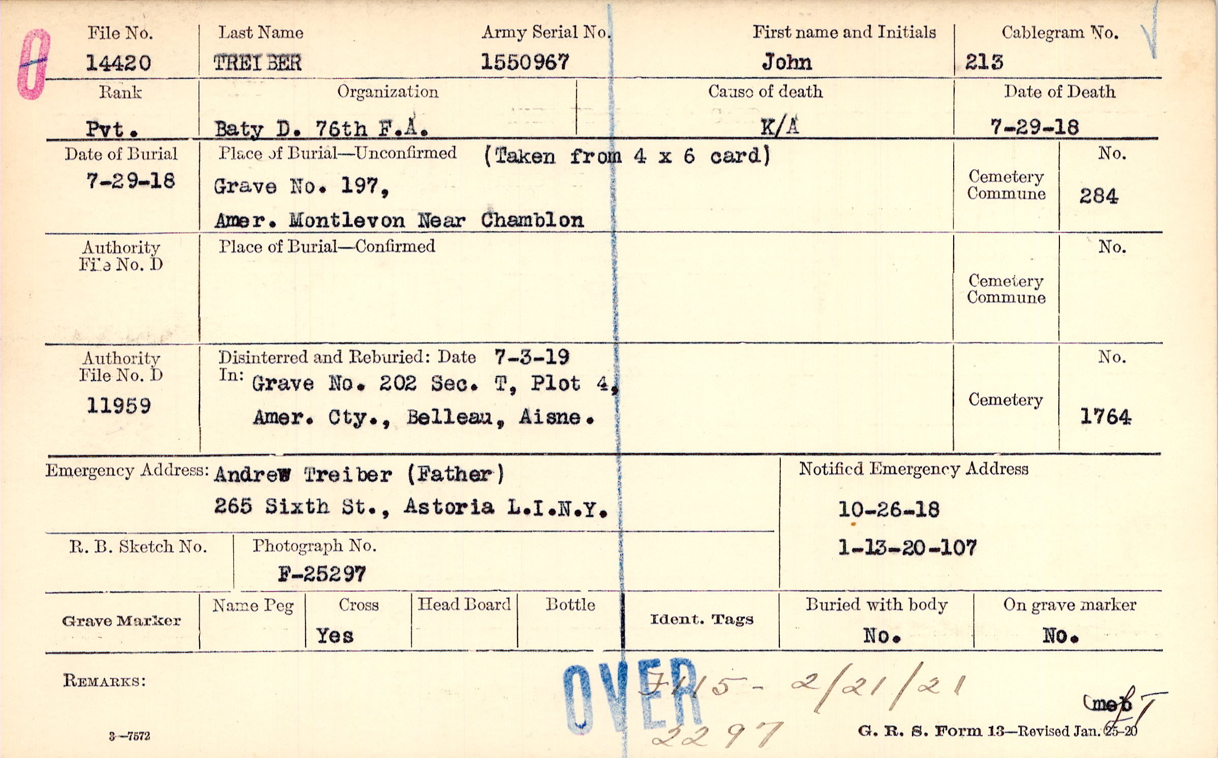 10/26/1918, Form 107: 1/13/1920