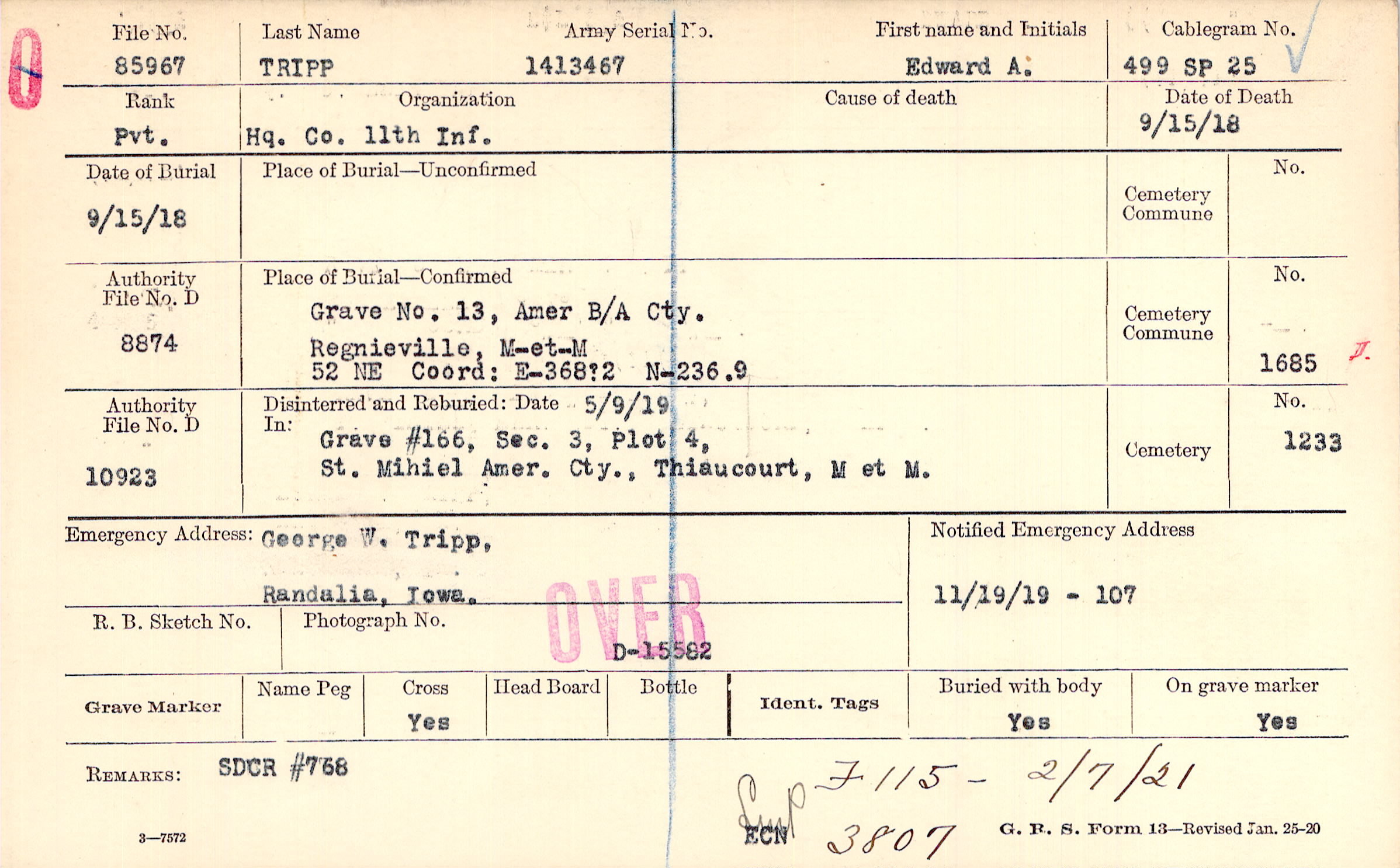 Grave 13, Amer B/A Cty., Regnieville, M-et-M, 52 NE