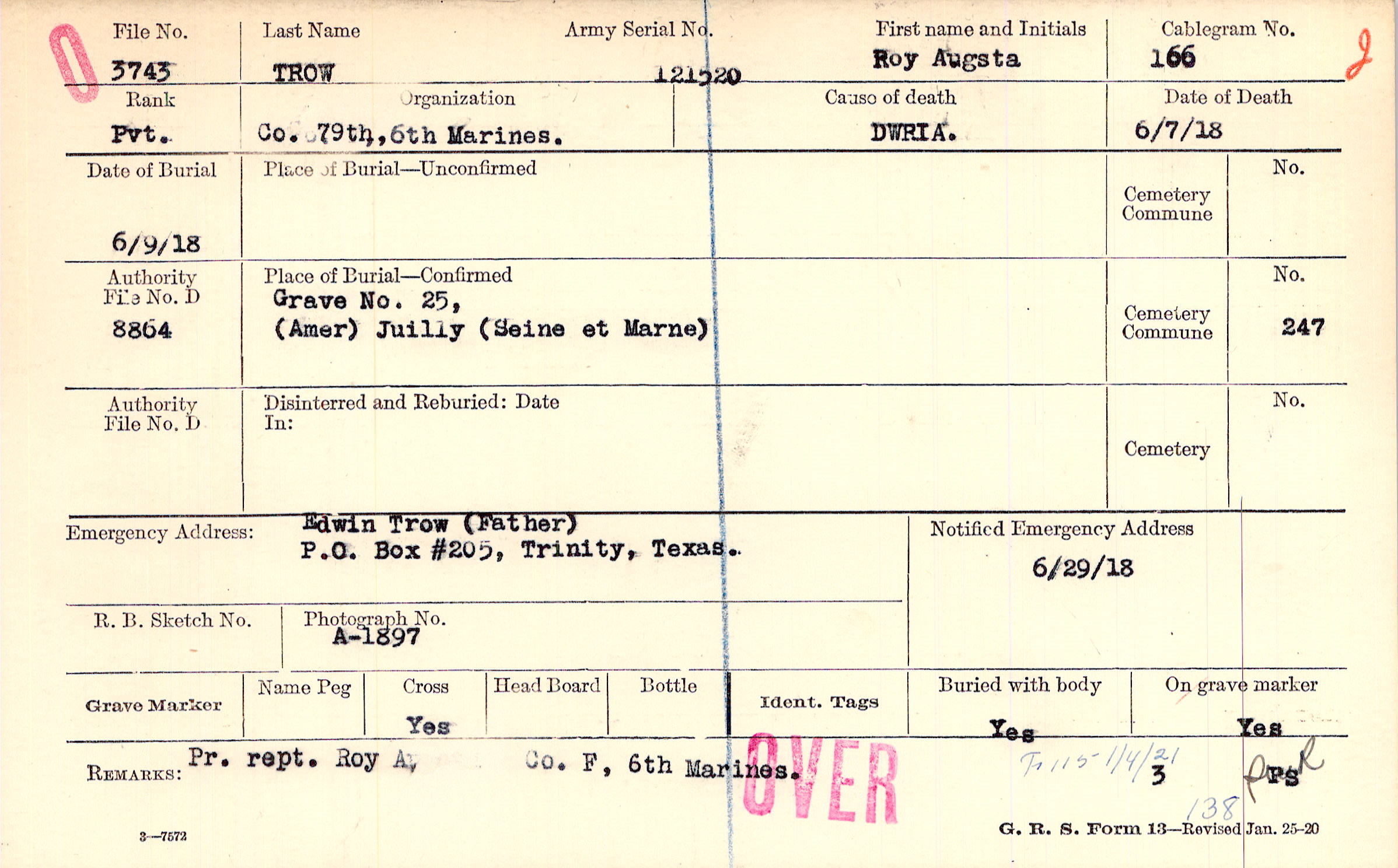 Pr. rept. Roy A, Co. F, 6th Marines., F115 1/4/21 138