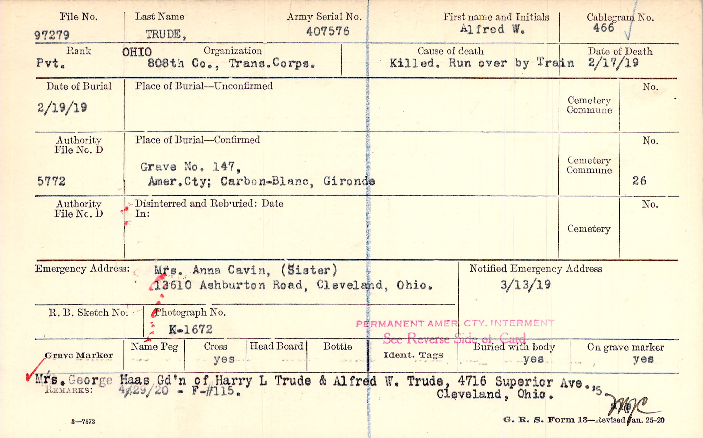 Mrs. George Haas Gd’n of Harry L Trude & Alfred W. Trude, 4716 Superior Ave., Cleveland, Ohio., 4/29/20 - F-#115.