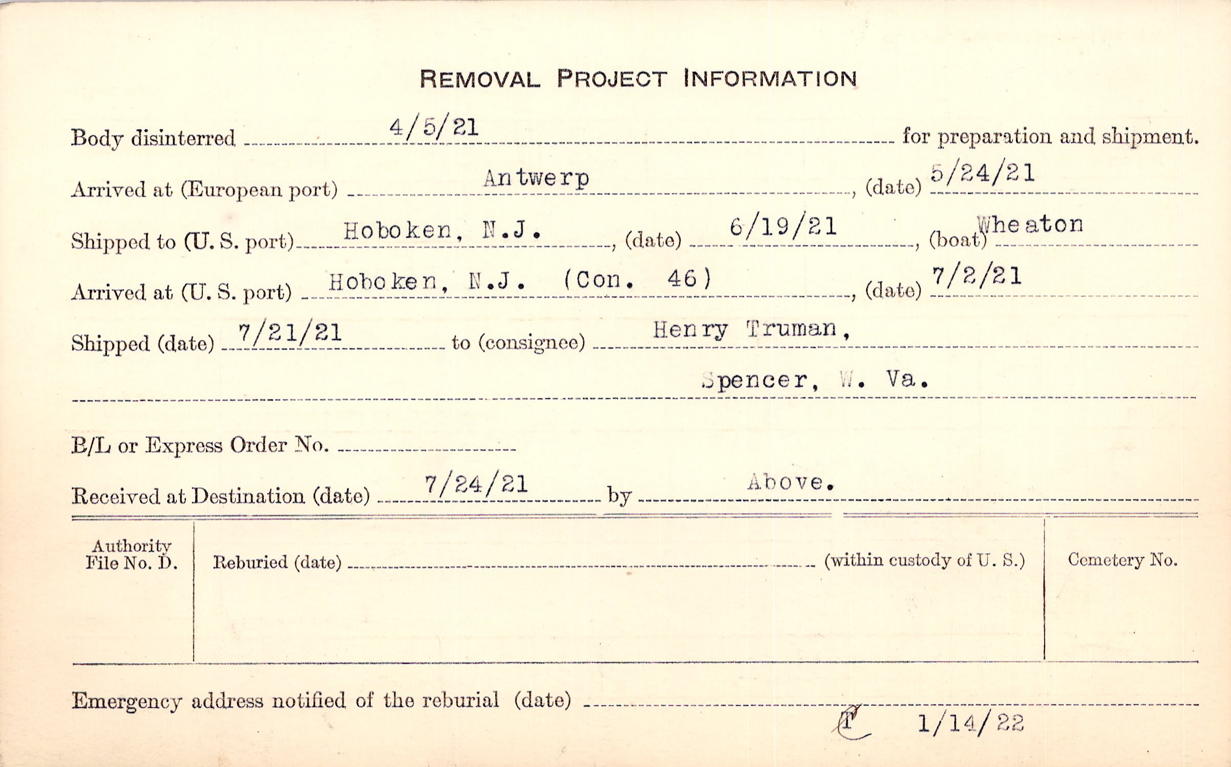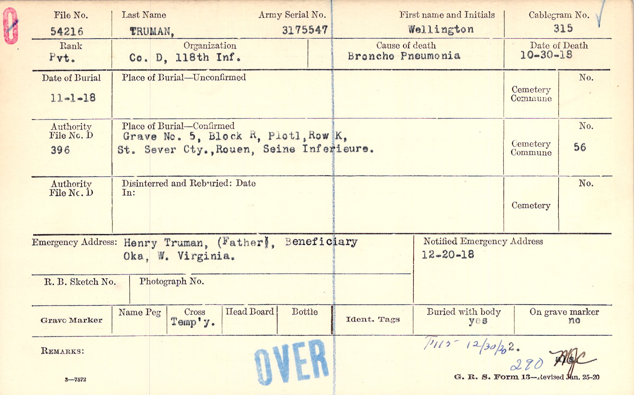 Henry Truman, (Father), Oka, W. Virginia, Beneficiary