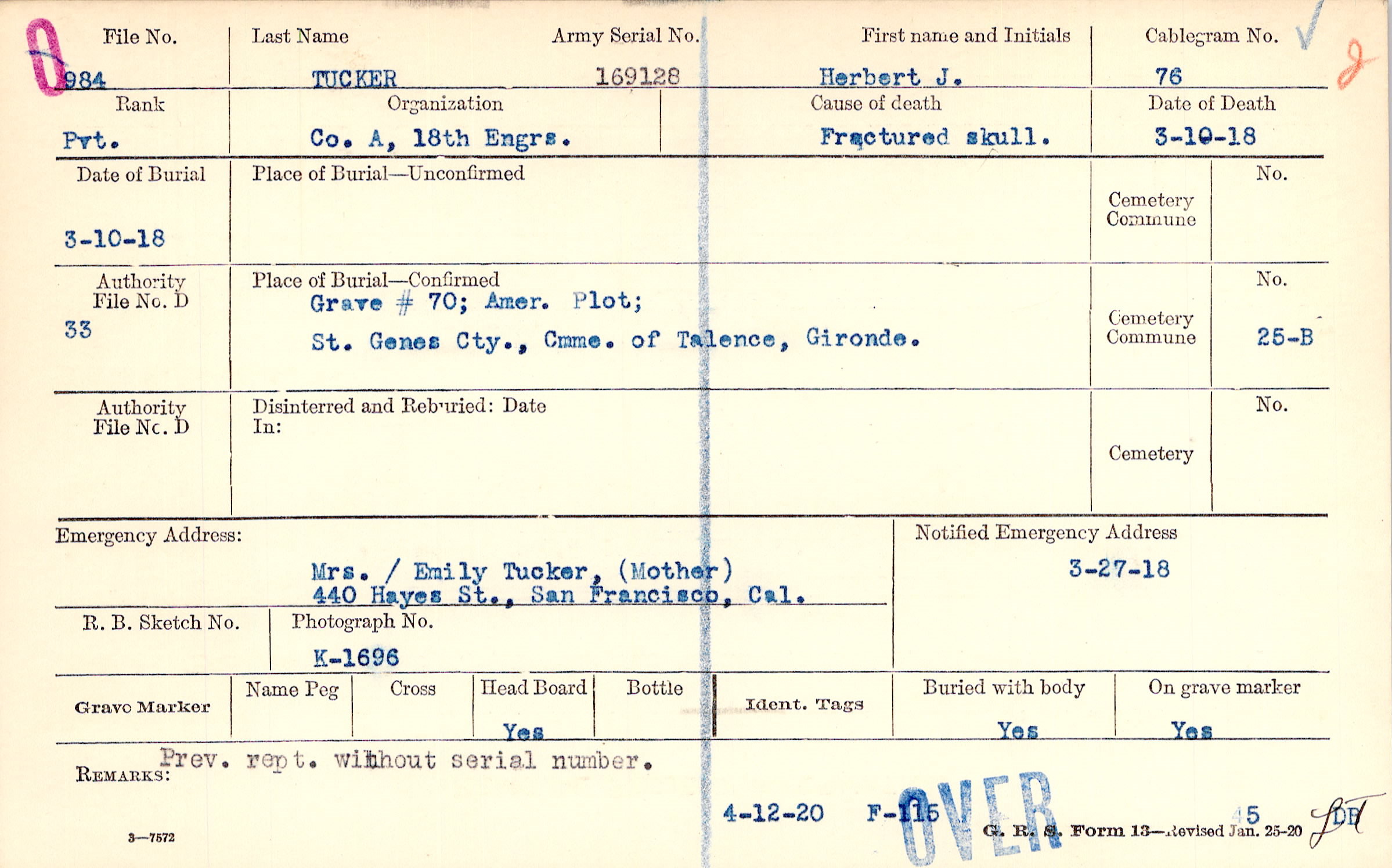 Army Serial No. |