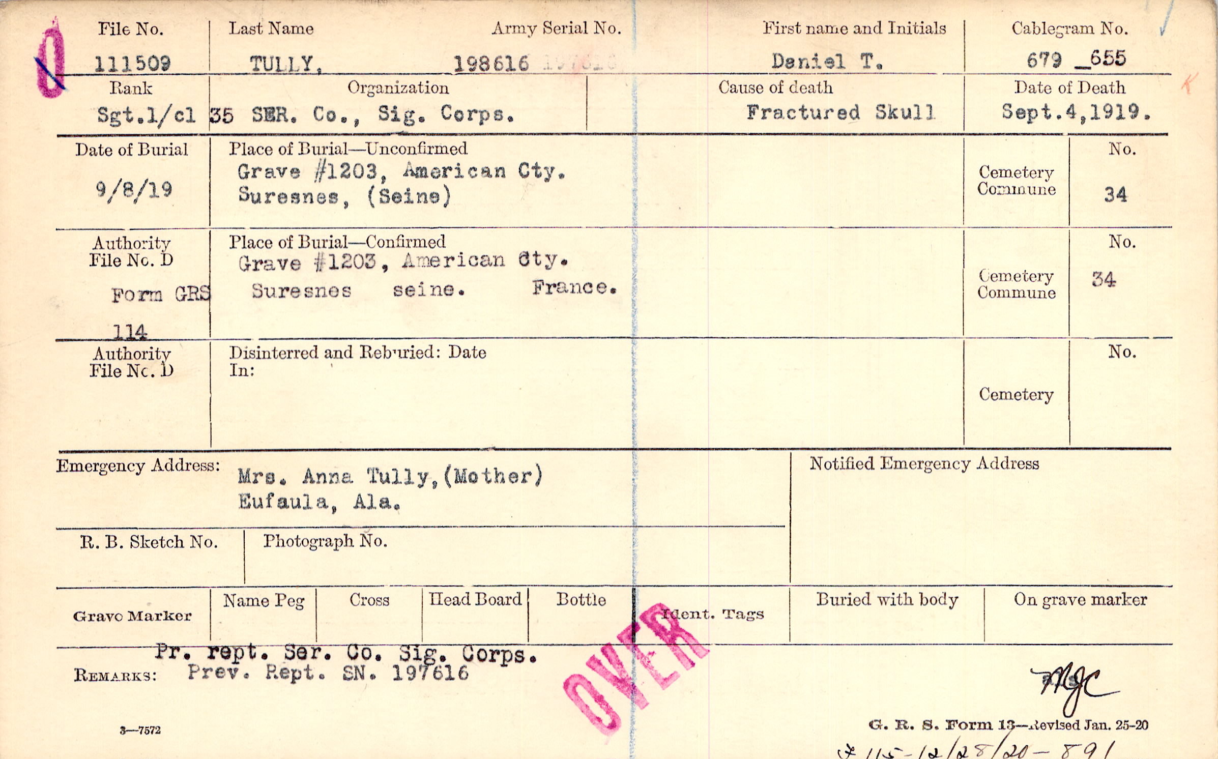 Army Serial No. |
