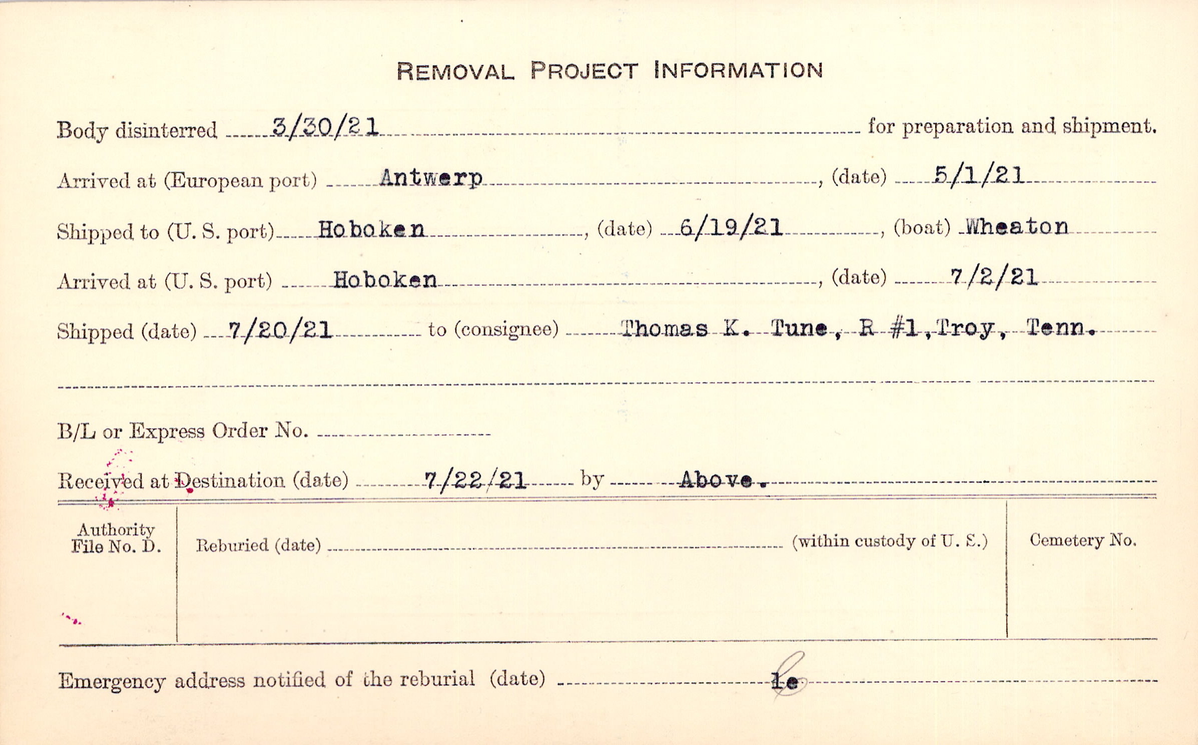 to Thomas K. Tune, R #1, Troy, Tenn.