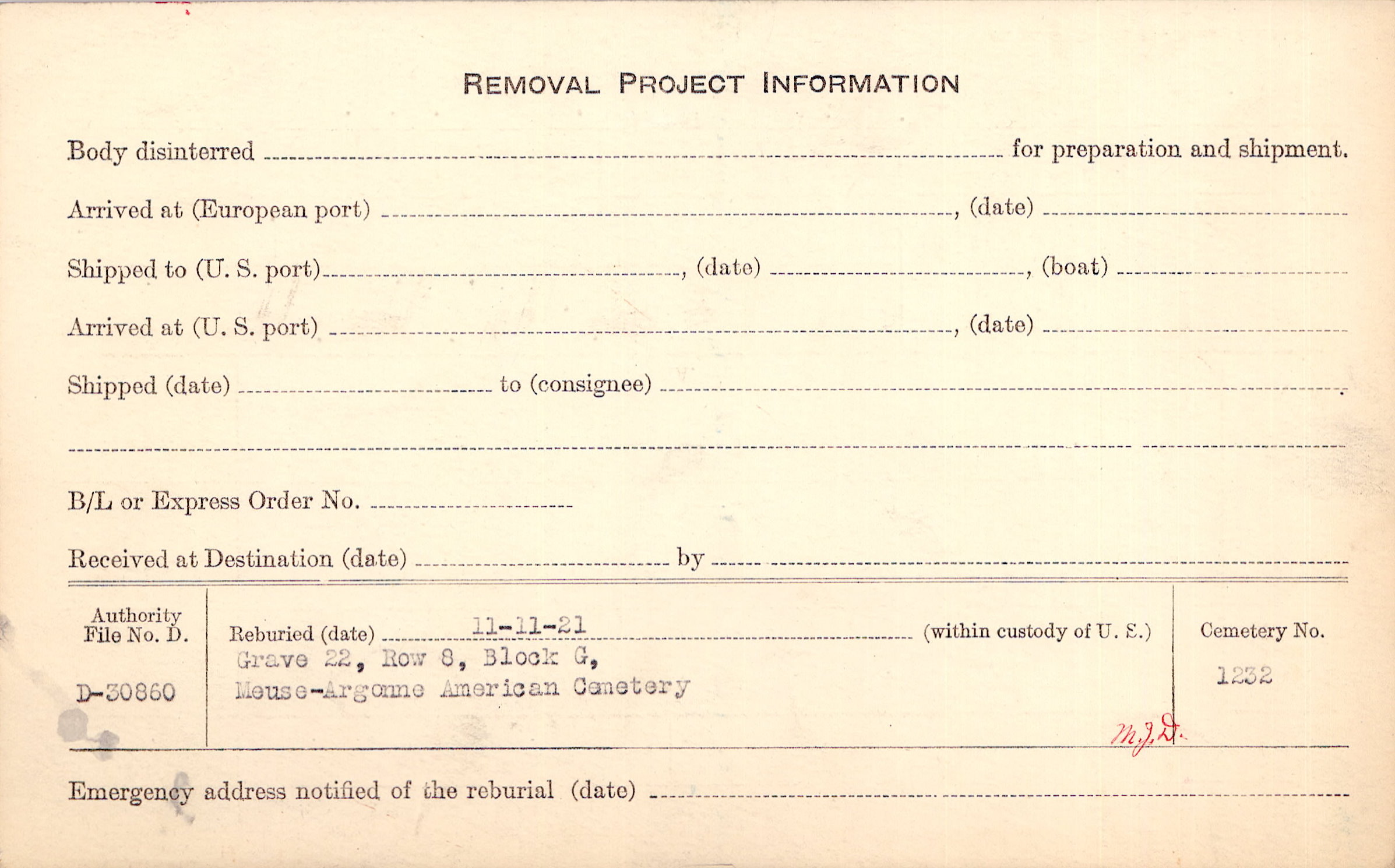 | Permanent Burial in Foreign Cemetery |