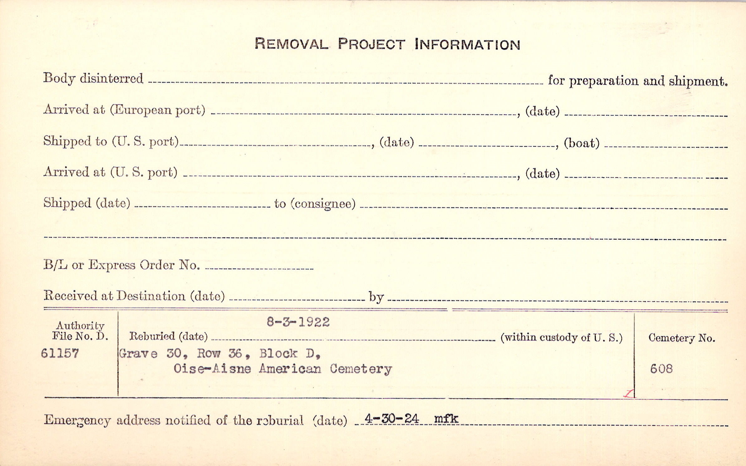 | Permanent Burial in Foreign Cemetery |