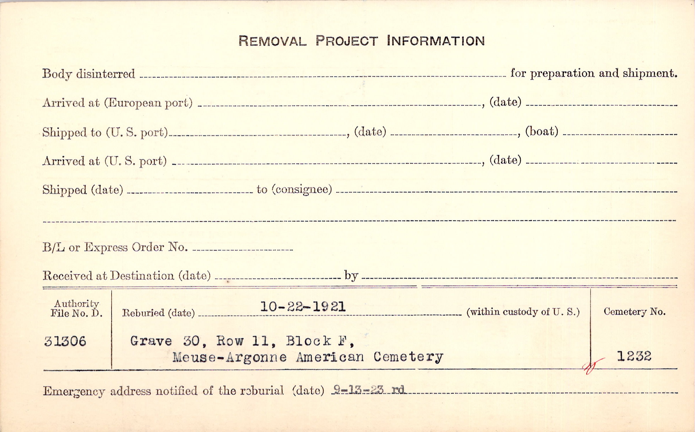 | Permanent Burial in Foreign Cemetery |
