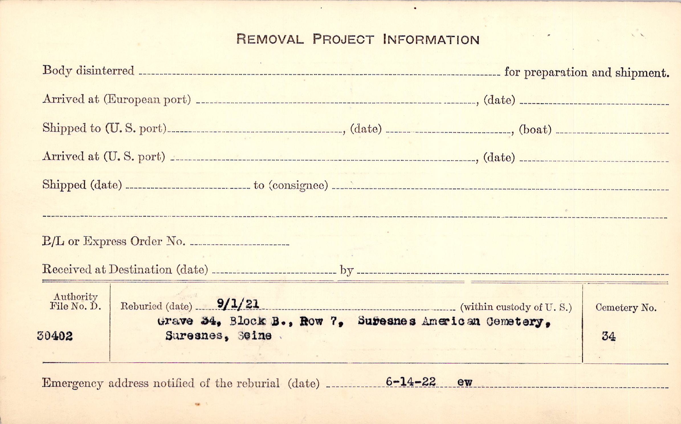 Grave 1142, Suresnes American Cemetery, Suresnes, Seine