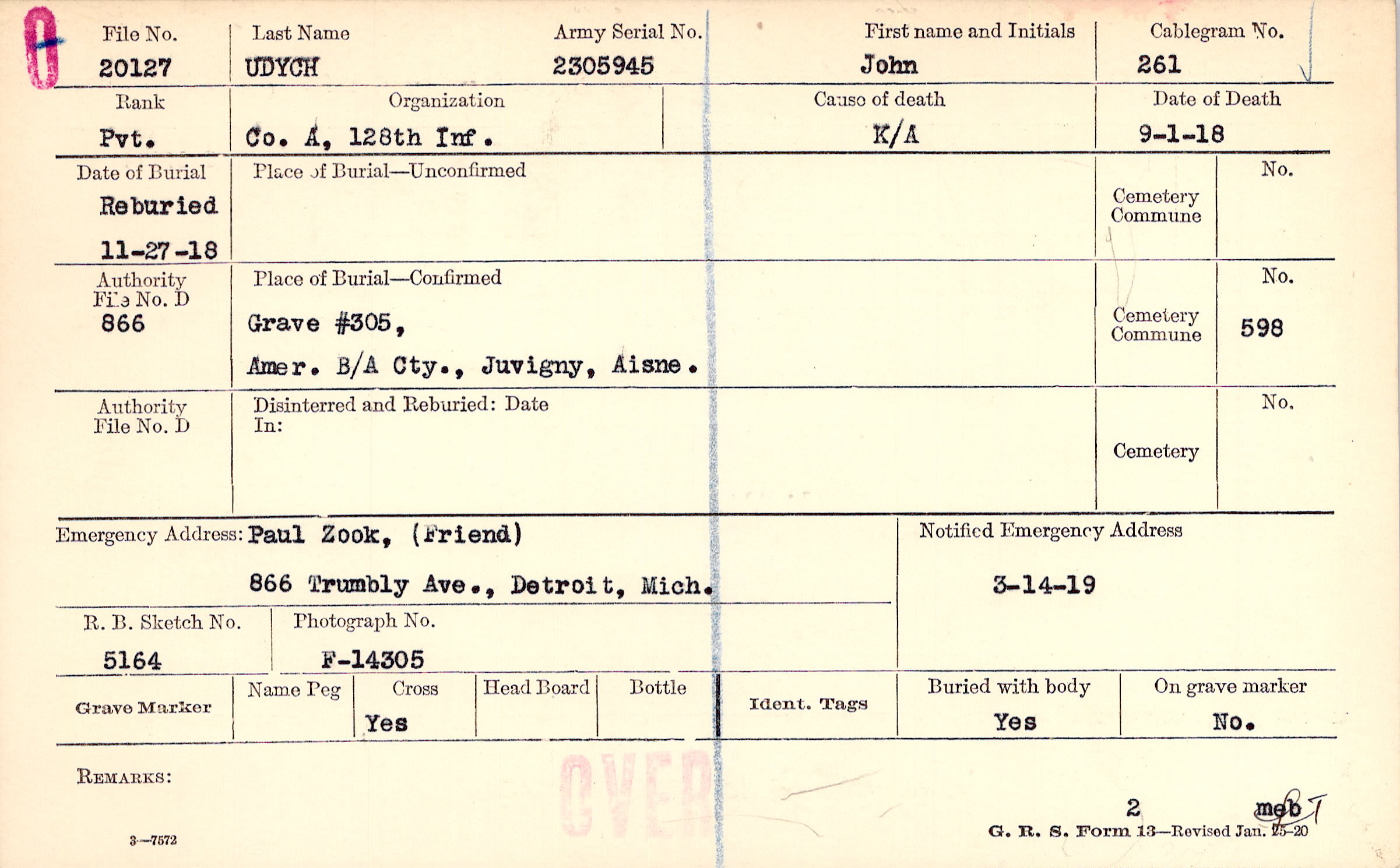 Grave #305, Amer. B/A Cty., Juvigny, Aisne