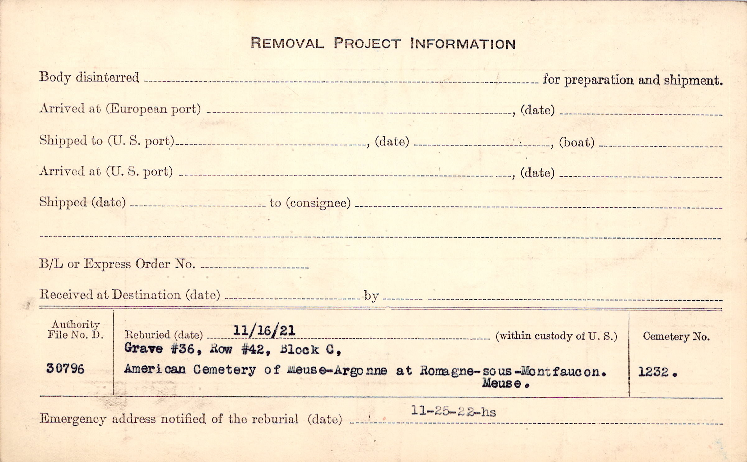 Grave 174, Section 56, Plot 4, Argonne American Cemetery, Romagne-sous-Montfaucon, Meuse