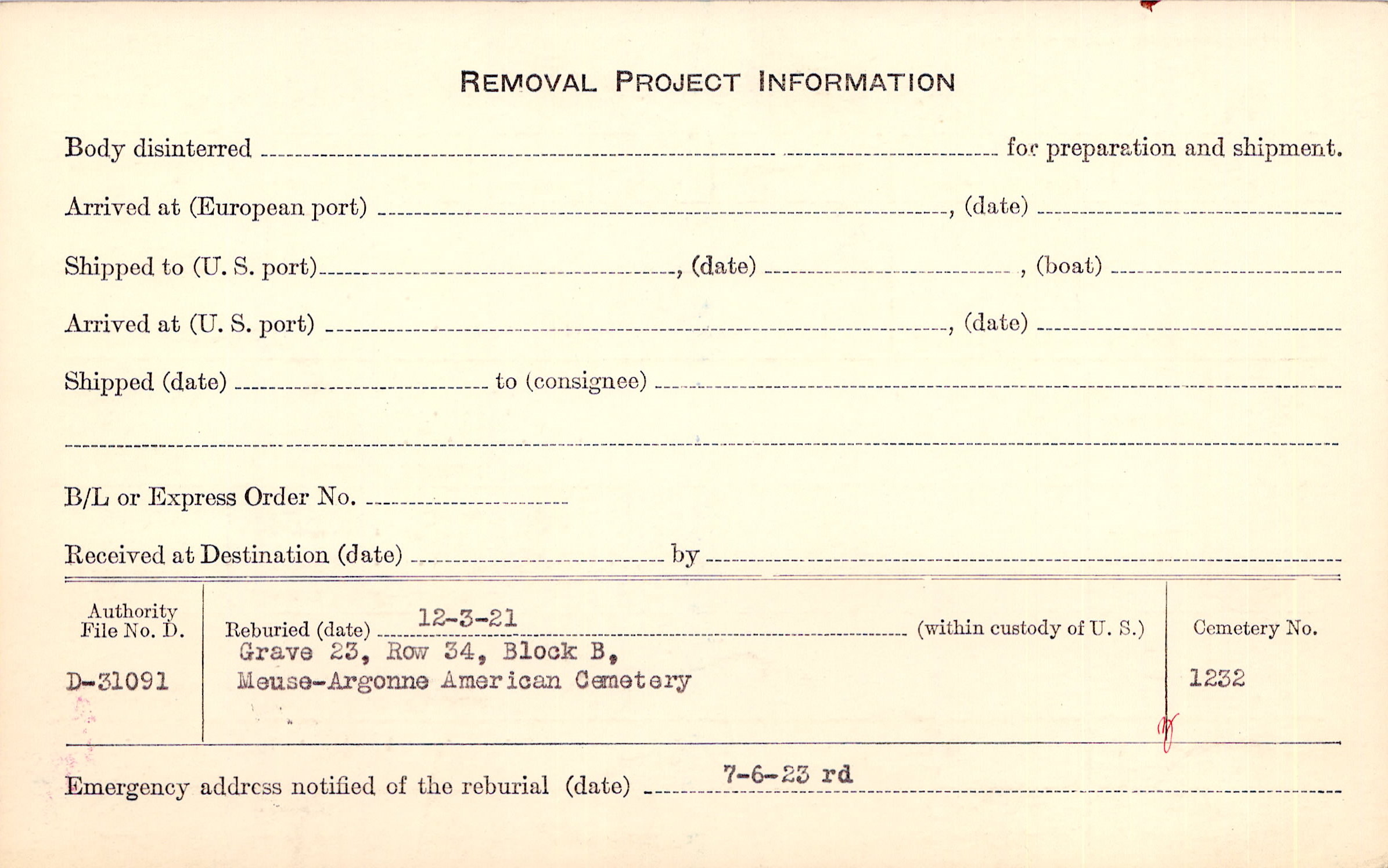 Grave 1, Section 33, Plot 1, Argonne American Cemetery, Romagne-sous-Montfaucon, Meuse