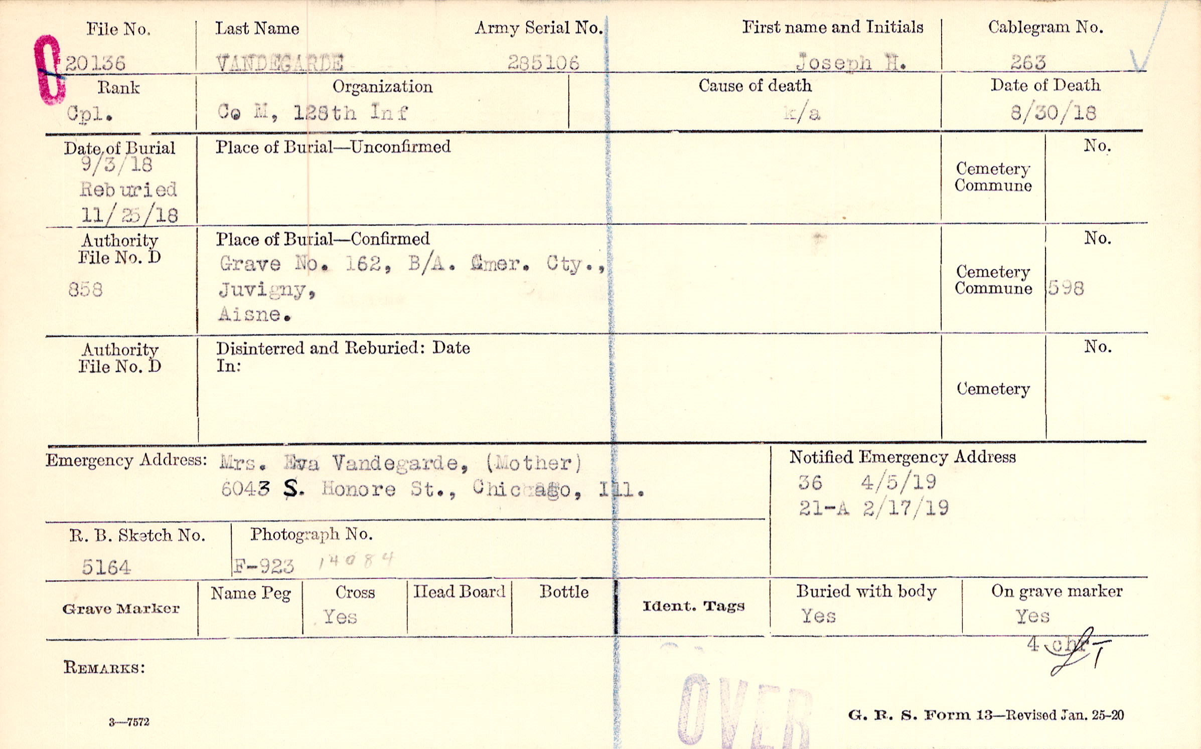 Grave 162, B/A. Amer. Cty. , Juvigny, Aisne.