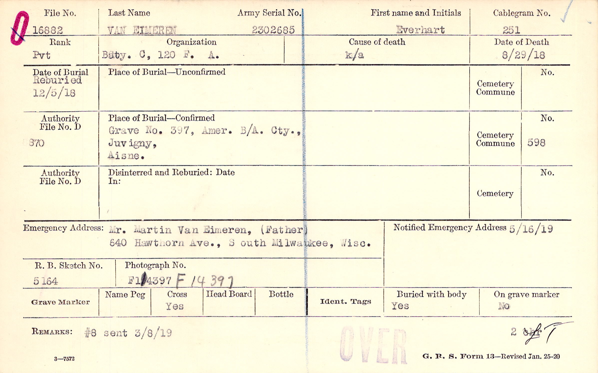 Grave 397, Amer. B/A Cty., Juvigny, Aisne.