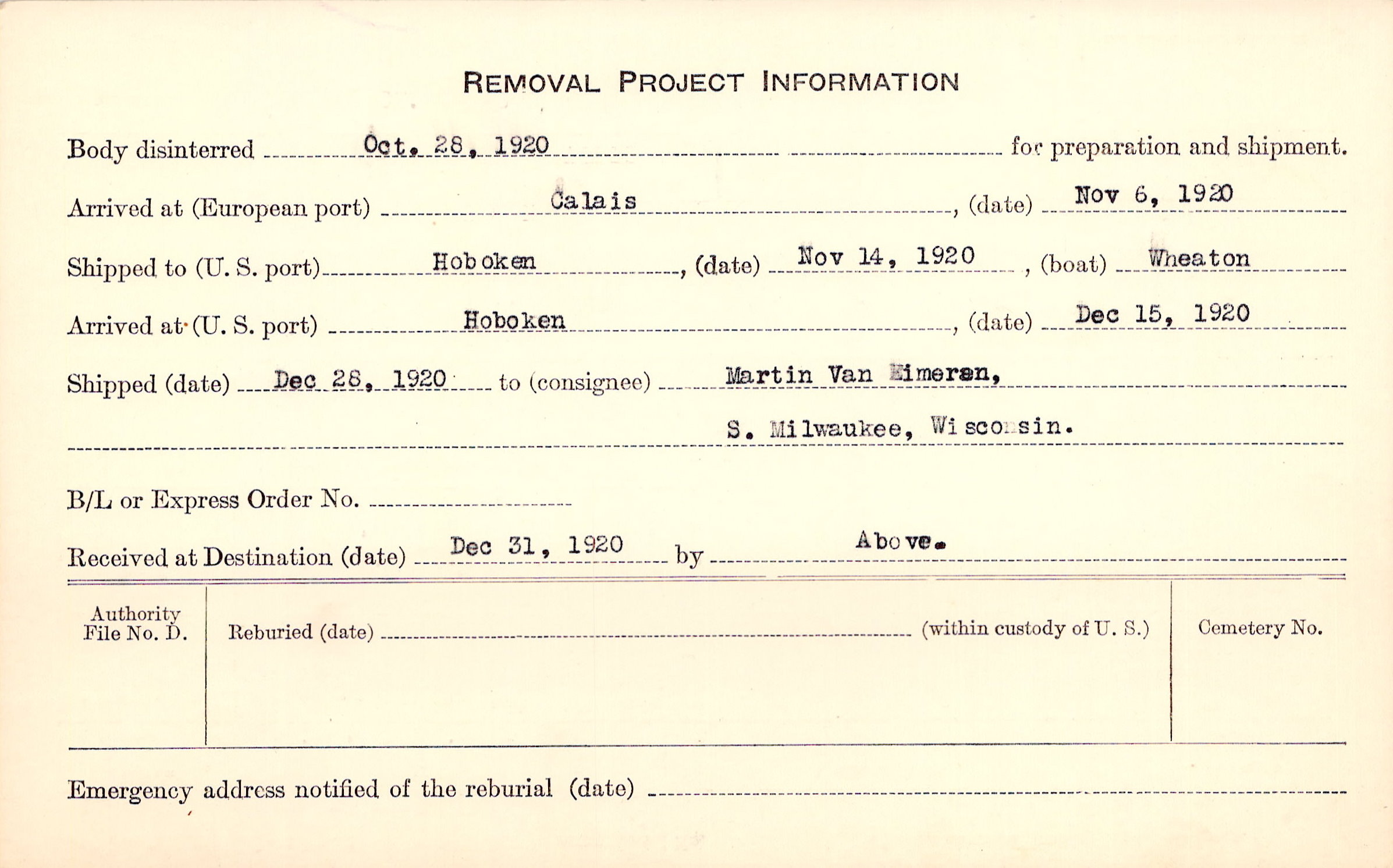 Mr. Martin Van Eimeren, (Father), 640 Hawthorn Ave., South Milwaukee, Wisc.