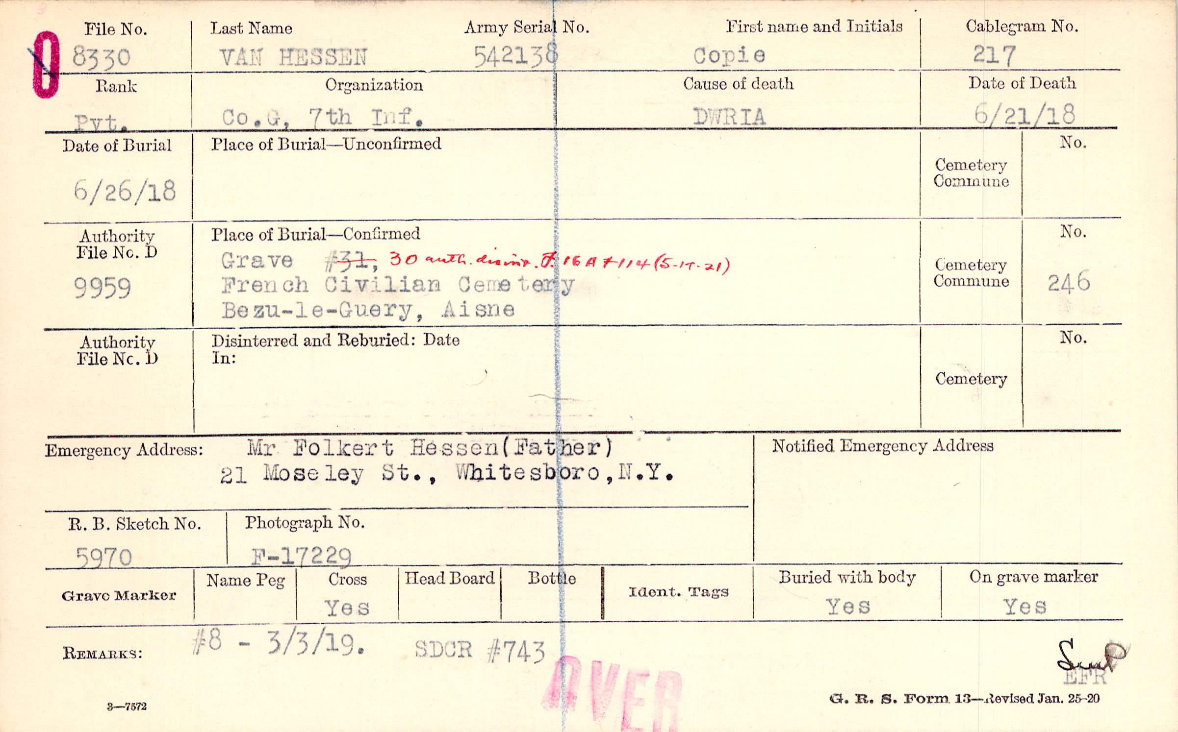 Grave #30, French Civilian Cemetery, Bezu-le-Guery, Aisne