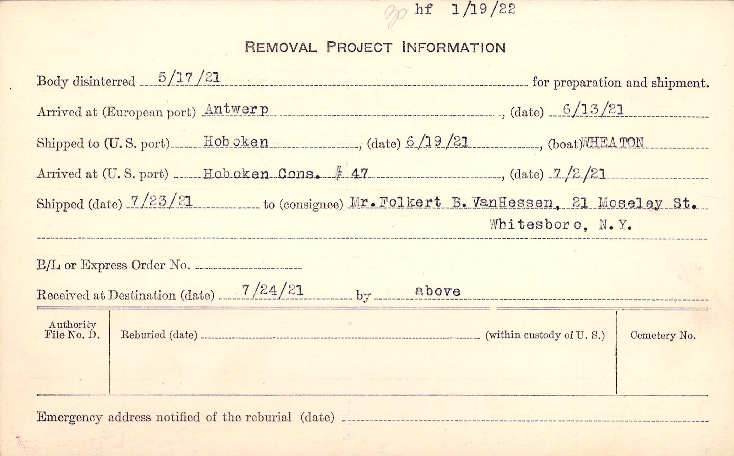 Mr Folkert Hessen(Father), 21 Moseley St., Whitesboro,N.Y.