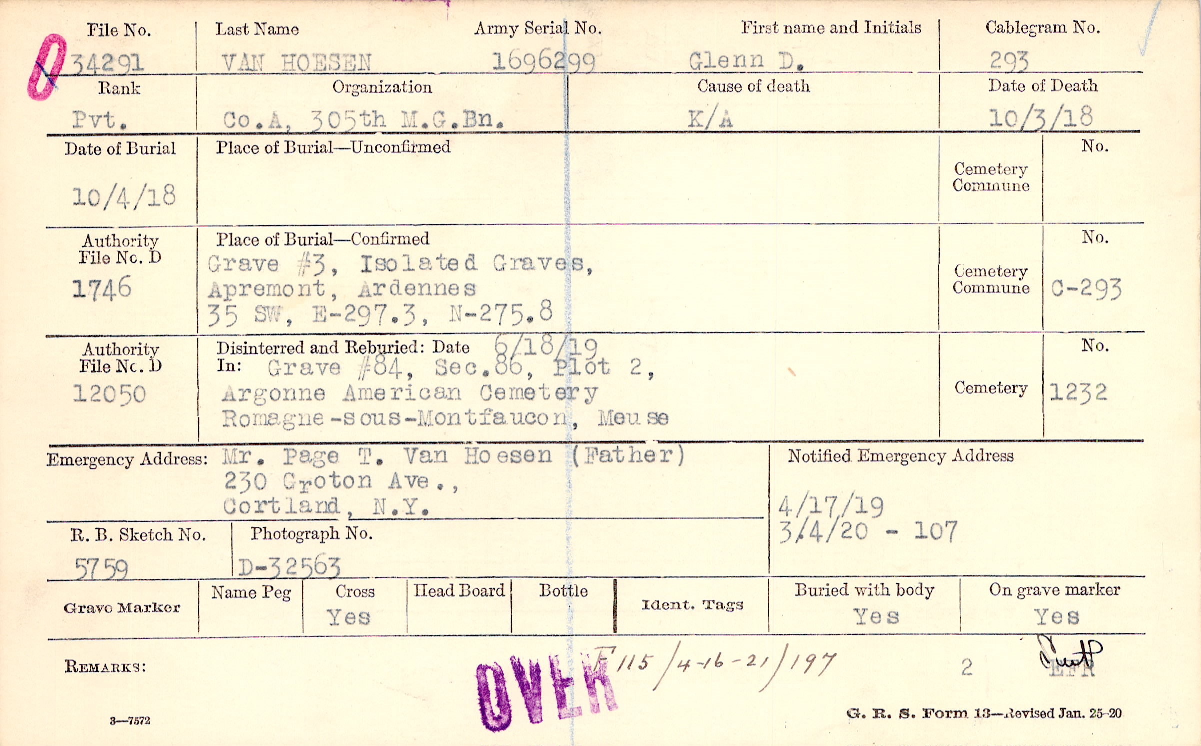 Grave #3, Isolated Graves, Apremont, Ardennes, 35 SW