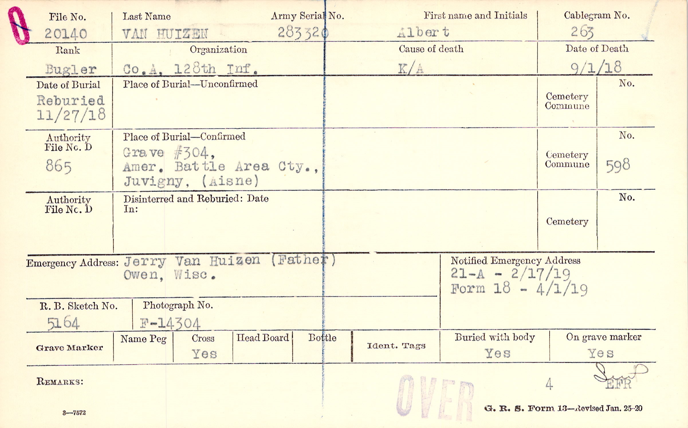Grave #304, Amer. Battle Area Cty., Juvigny, (Aisne)